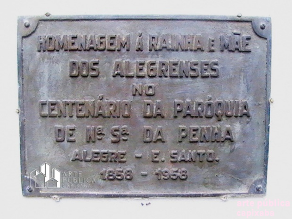 Lê-se: "Homenagem á rainha e mãe dos alegrenses no centenário da paróquia de N S da Penha Alegre – E. Santo. 1858 - 1958"