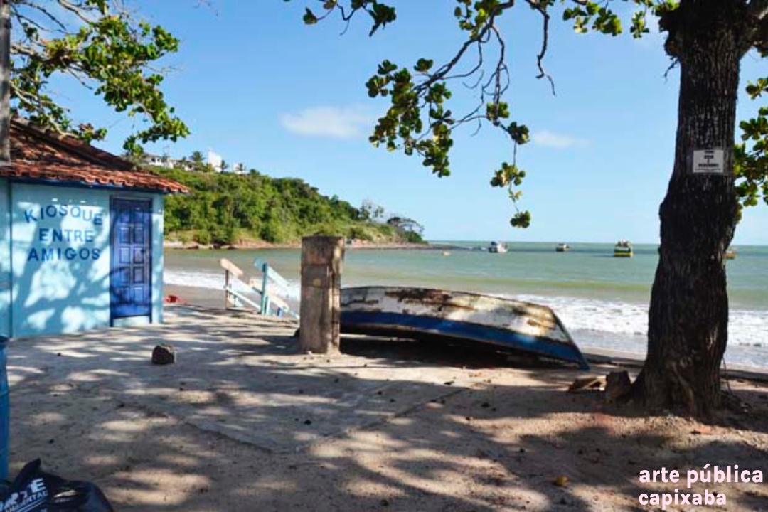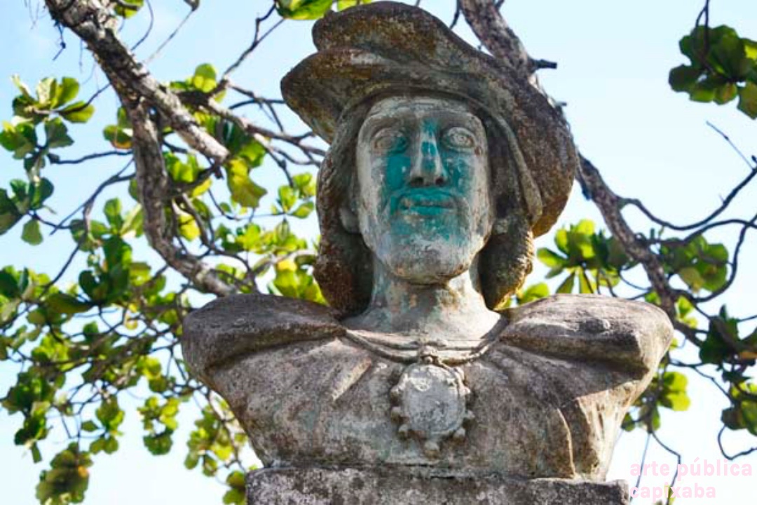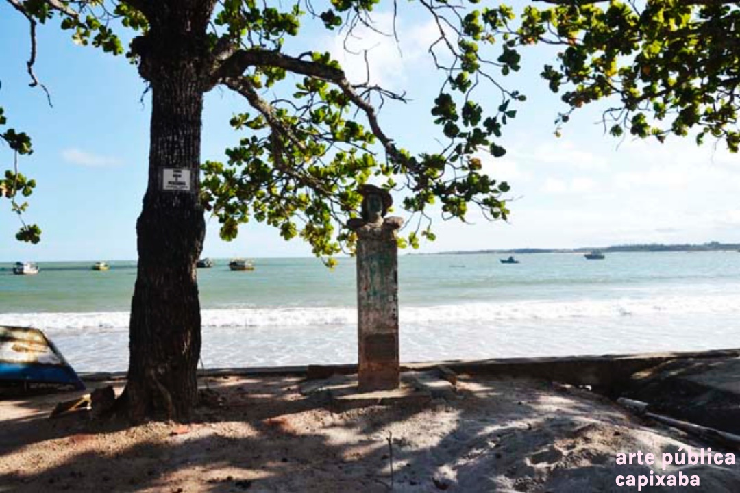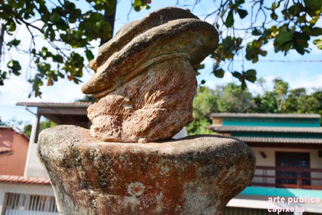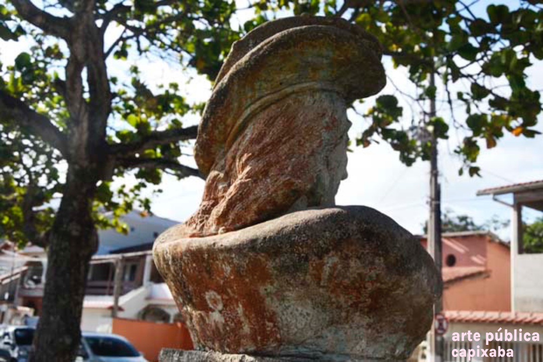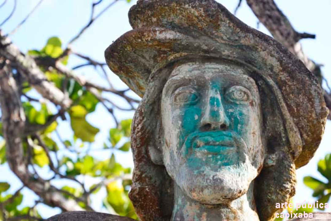 Lê-se: " Amerigo Vespuccii Nosso primeiro visitante Ubu, 10 de janeiro de 1502 Ronaldo Moreira"