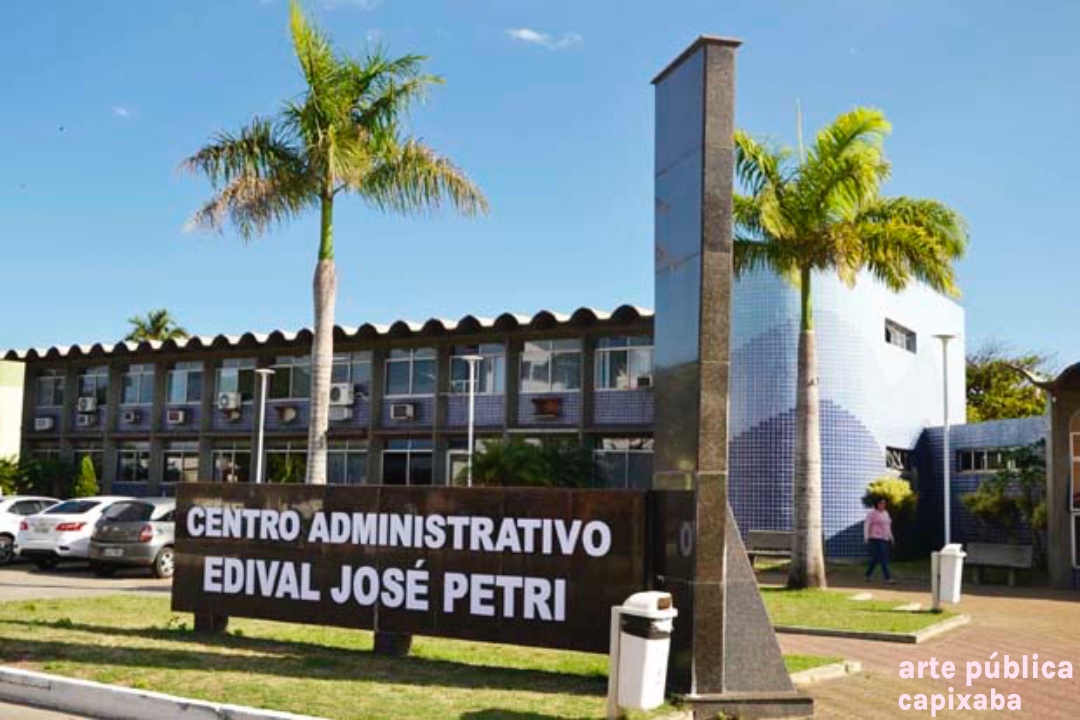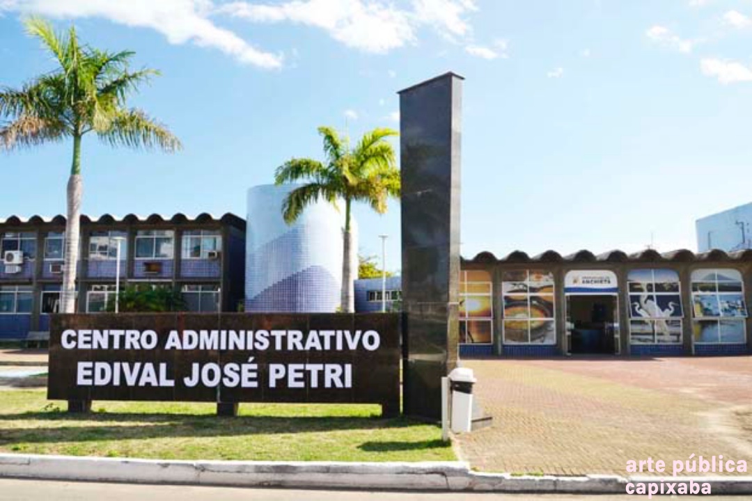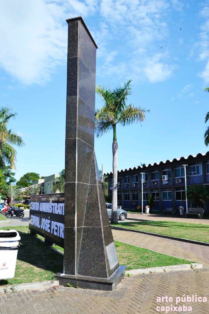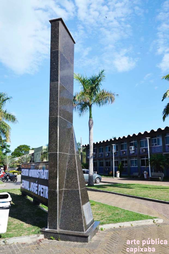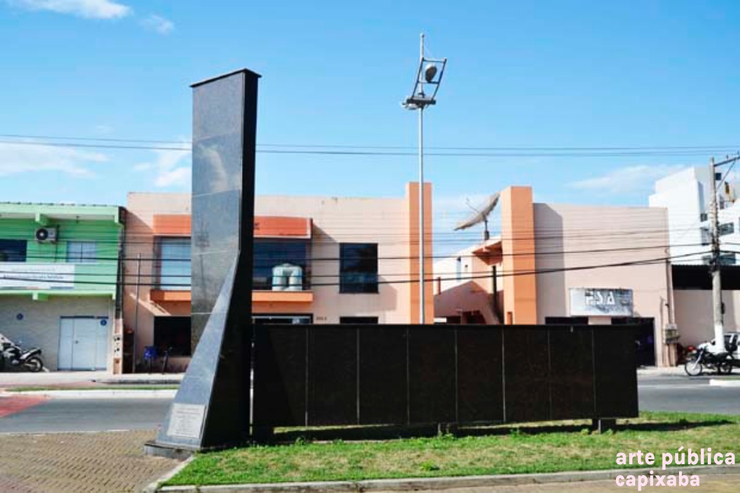 Lê-se: "PRACA RERITIBA OBRA REALIZADA NO GOVERNO PARTICIPATIVO ... PREFEITO MUNICIPAL PROF. EDIVAL JOSE PETRI VICE PREFEITO SHIRLÊNIO MULINARI SECRETARIO DE OBRAS DR AUSUSTO FERRARI ÁREA DOADA PELA SAMARCO MINERAÇÃO S/A ANCHIETA, 25 DE MARÇO DE 1995"