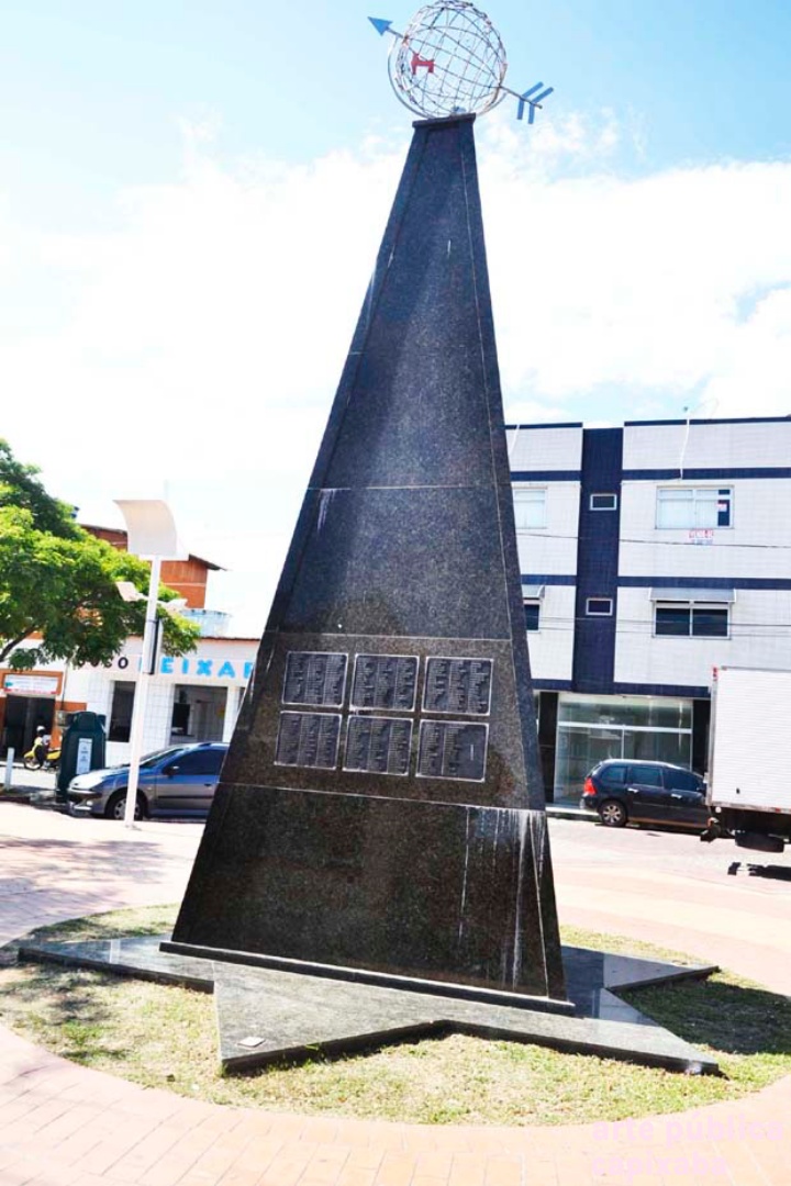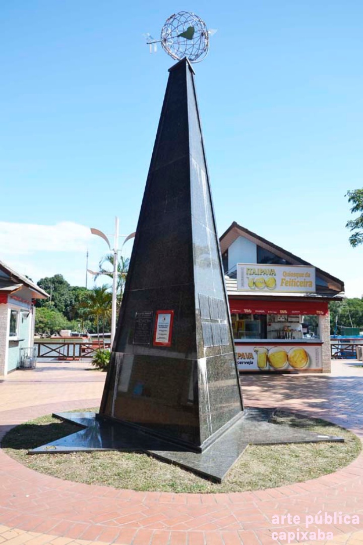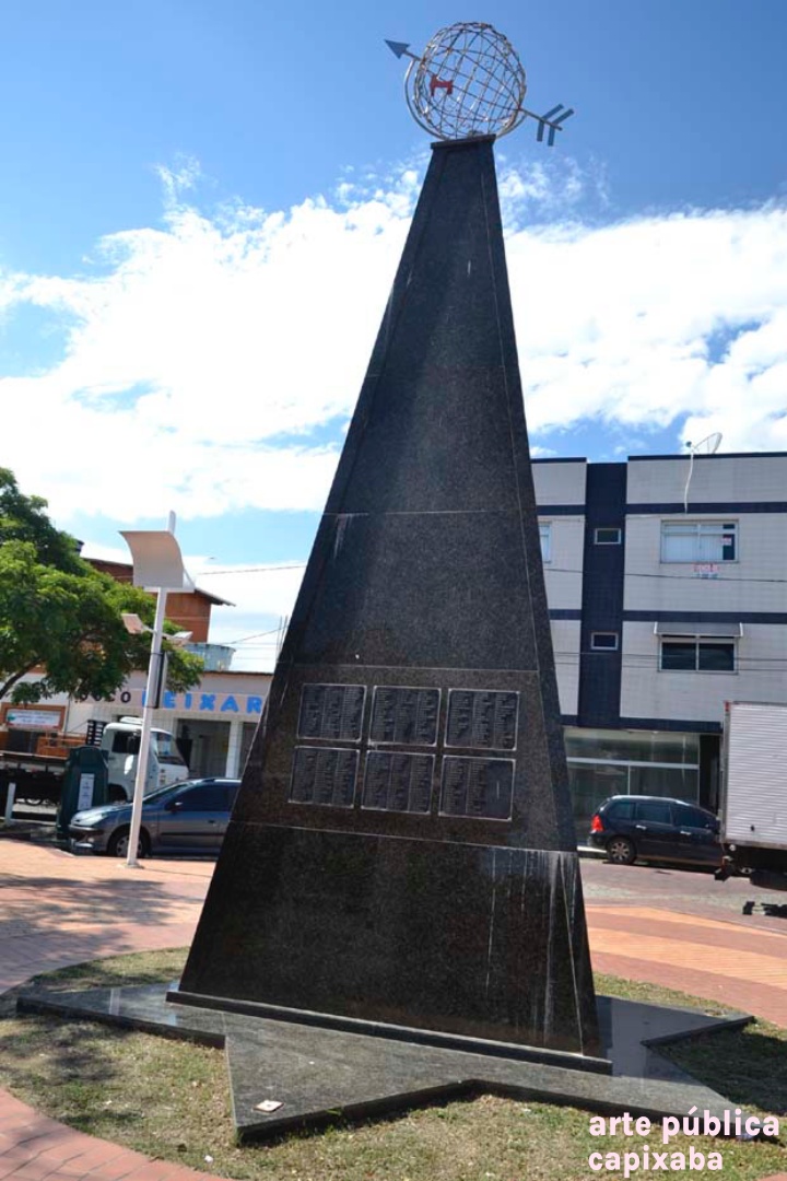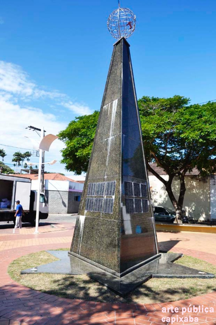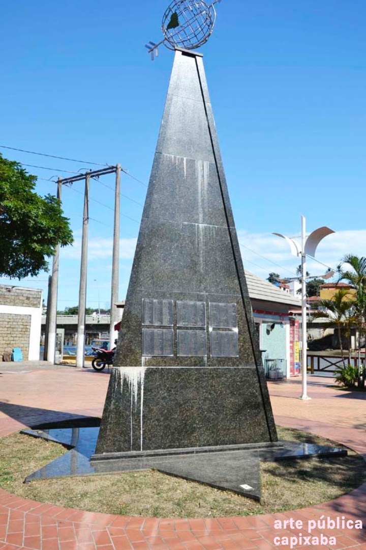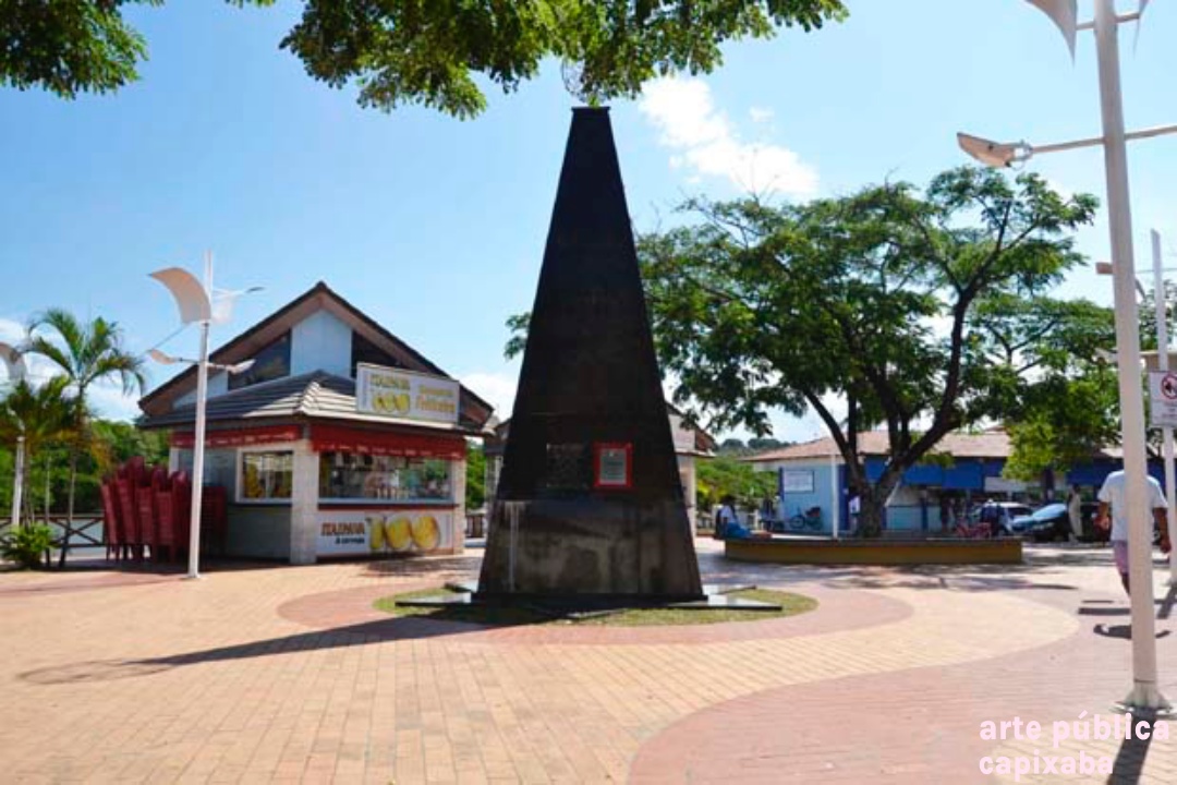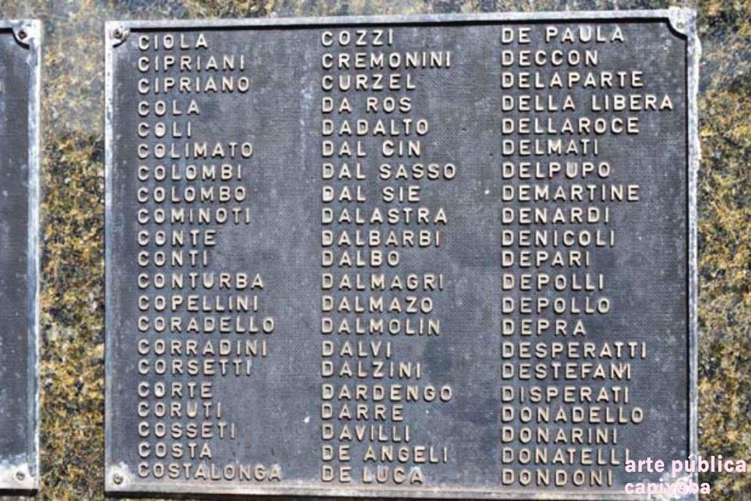 Lê-se: "PIAZZA DEGLI IMMIGRANT (PRACA DOS IMIGRANTES) OBRA REALIZADA NO GOVERNO PARTICIPATIVO 93/96 PRESIDENTE DA REPUBLICA FERNANDO HENRIQUE CARDOSO GOVERNADOR DO ESTADO VITOR BUAIZ PREFEITO MUNICIPAL EDIVAL JOSE PETRI VICEPREFEITO SHIRLÊNIO MULINARI PRESIDENTE DA CAMARA JOČELEM GONCALVES DE JESUS SECRETARIO DE OBRAS AUGUSTO FERRARI CENTENARIO DA MORTE DO BEATO ANCHIETA ANCHIETA, 21 DE DEZEMBRO DE ...."
