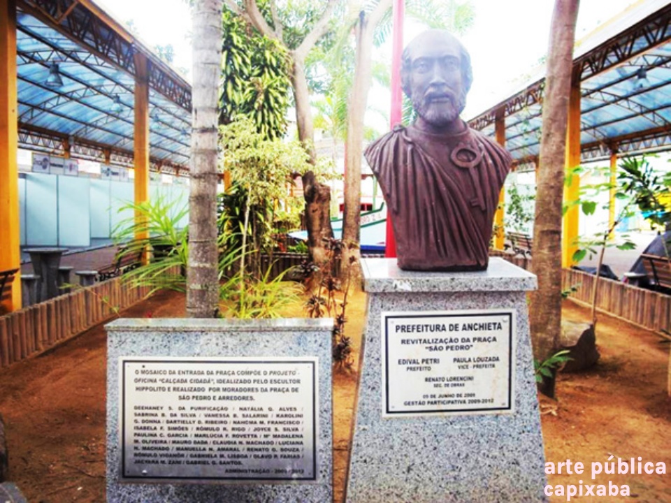Lê-se: "Prefeitura de Anchieta Revitalização da Praça "São Pedro" Edval Petri Prefeito Paula Louzada Vice-Prefeita Renato Lorencini Sec. Obras 05 de junho de 2009 Gestão participativa 2009-2012"