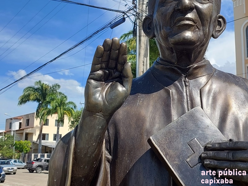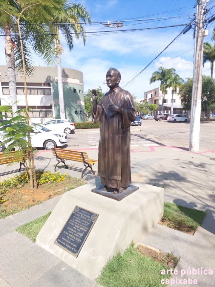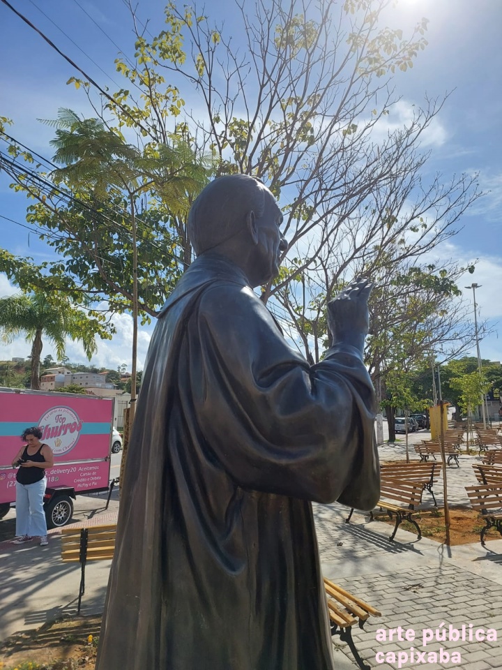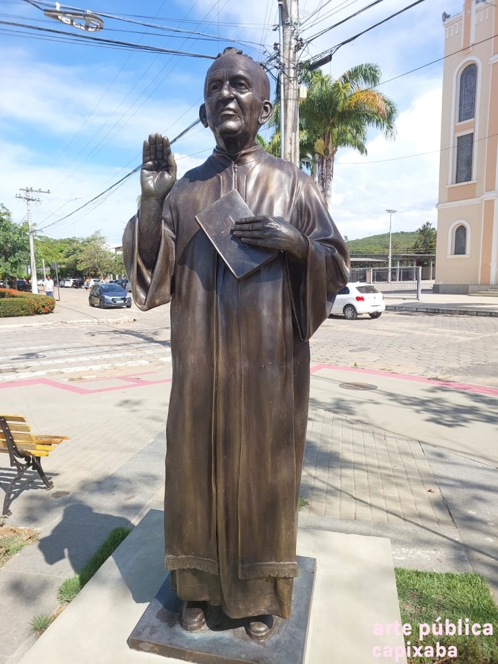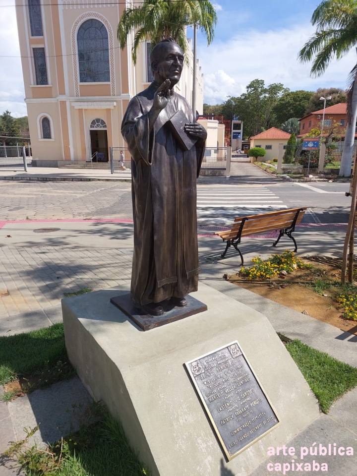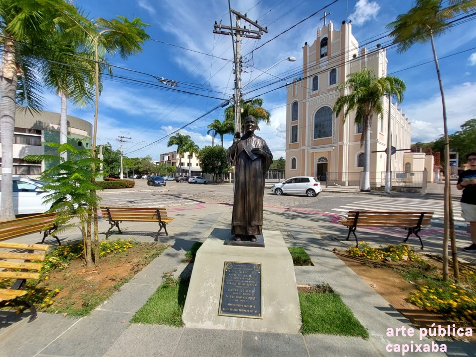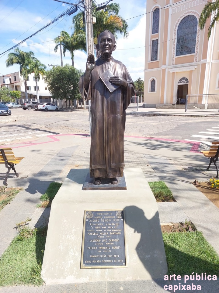 Lê-se: "Homenagem ao saudoso Monsenhor Alonso Benício Leite *15/02/1915 + 26/09/1991. "O justo vive pela fé" Saudades eterna do povo Guanduense Marcelo Keller Santiago Pároco atual Lastênio Luiz Cardoso Prefeito Municipal Patrick Favarato Perutti Vice Prefeito Administração 2021/2024 Baixo Guandu setembro de 2022."