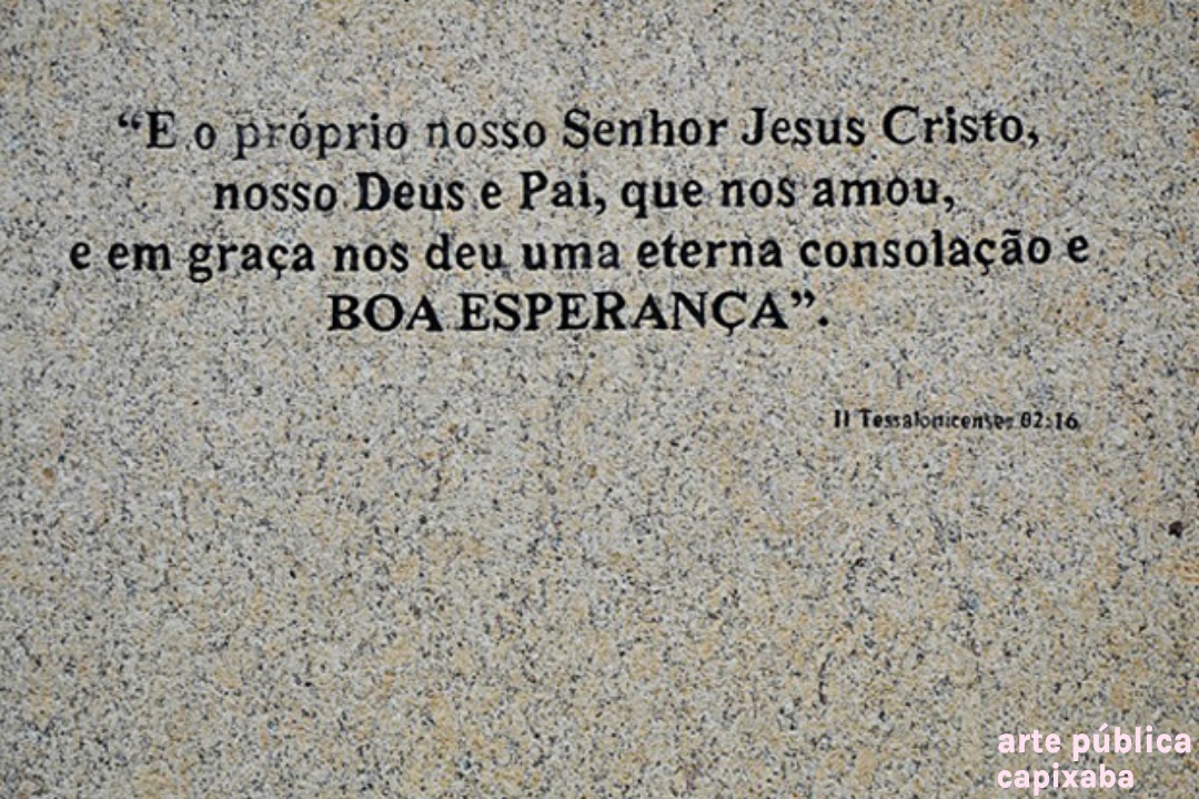 Lê-se: "E o próprio nosso Senhor Jesus Cristo, nosso Deus e Pai, que nos amou, e em graça nos deu uma eterna consolação e BOA ESPERANÇA."