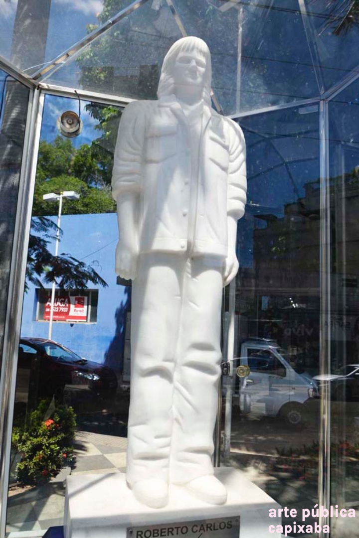 Roberto Carlos (1941) é um cantor e compositor brasileiro. O "Rei" da música romântica brasileira. Foi o líder do movimento musical chamado Jovem Guarda, que surgiu nos anos 60. Em parceria com Erasmo Carlos, compôs inúmeros sucessos. Roberto Carlos Braga (1941) nasceu em Cachoeiro do Itapemirim, Espirito Santo, no dia 19 de abril de 1941. Filho de relojoeiro Robertino Braga e da costureira Laura Moreira Braga com 6 anos sofreu um acidente na linha do trem que resultou em amputação de parte da perna direita. Estudou no Conservatório Musical de sua cidade. Aos 9 anos apresentou-se pela primeira vez cantando, no programa infantil da Rádio Cachoeira. Já chamava a atenção imitando o cantor Bob Nelson. Aos 12 mudou-se com a família, para Niterói, Rio de Janeiro. Em Cachoeiro de Itapemirim, sua cidade natal, a casa dele se tornou em uma Casa de Cultura, onde os fãs, turistas, visitantes, podem ter acesso as coisas do Roberto Carlos. A Casa de Cultura Roberto Carlos é a casa onde nasceu e viveu até os 13 anos o cantor Roberto Carlos Braga, com seus pais Laura e Robertino e seus irmãos Norma, Carlos Alberto e Lauro. A casa foi adquirida pela prefeitura municipal, que a restaurou para valorizar sua arquitetura original. Possui fotos, discos, quadros, instrumentos musicais, enfim, a história de Roberto Carlos. A Casa de Cultura Roberto Carlos recebe milhares de fãs, curiosos e admiradores do cantor cachoeirense. A casa também conta em seu pavimento superior com o Cantinho do Artesão, sede da Associação dos Artesãos de Cachoeiro de Itapemirim, e oferece diversos produtos artesanais em pedra, contas, madeira, tecido, além de doces, pães caseiros e compotas. O horário de funcionamento é o mesmo da casa, que seria das 12 às 18 horas. Atualmente, cerca de 500 visitantes passam por mês no local, mas a expectativa da prefeitura é receber cerca de 200 visitantes no próximo dia 19, quando Roberto Carlos vai estar no município para o show especial em seu aniversário de 75 anos. Em sua última passagem por Cachoeiro, em 2009, o Rei ficou alguns dias na cidade natal e visitou a casa onde passou a infância. História da Estátua do Roberto Carlos: Quatro anos depois de ser doada à Cachoeiro de Itapemirim, a escultura do rei Roberto Carlos foi instalada, na Praça que integra o Corredor Cultural Roberto Carlos, na área central da cidade. A escultura, esculpida em mármore branco, foi feita pela artista Ângella Borelli e doada ao município em 2011. “É muita emoção. É como se fosse uma recompensa por tantos anos de trabalho. Estou orgulhosa e muito emocionada em ver a obra exposta para os fãs de Roberto Carlos”, disse a artista plástica. A escultura de 1,72 metros do cantor Roberto Carlos tem o peso aproximado de 1.500 kg, a escultura será protegida com vidros ao redor. “Ficará totalmente protegida e a limpeza será feita constantemente. Foram seis anos de trabalho com mais de seis mil horas dedicadas a essa escultura”, explicou a Ângella. O gasto dela foi de R$ 6.000. Ângella começou a trabalhar na escultura em 2003 e finalizou em 2009. “Primeiro fiz uma maquete do Roberto em tamanho menor com argila. E depois fiz outra de gesso. A maquete, que antes media 40 cm, se transformou em tamanho idêntico ao que é hoje”, relembrou. Depois que a escultura em gesso ficou pronta, Ângella começou a trabalhar com mármore. “Quando era criança, com seis anos mais ou menos, e morava em São João da Boa Vista, aproveitava quando minha avó assava bolo e fazia minhas esculturas e coloca junto no forno. Algumas davam certo e outras quebravam”, contou. (2)