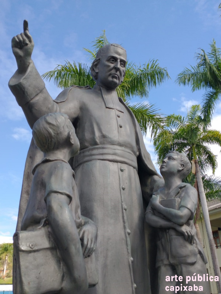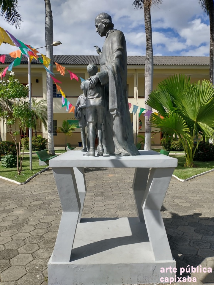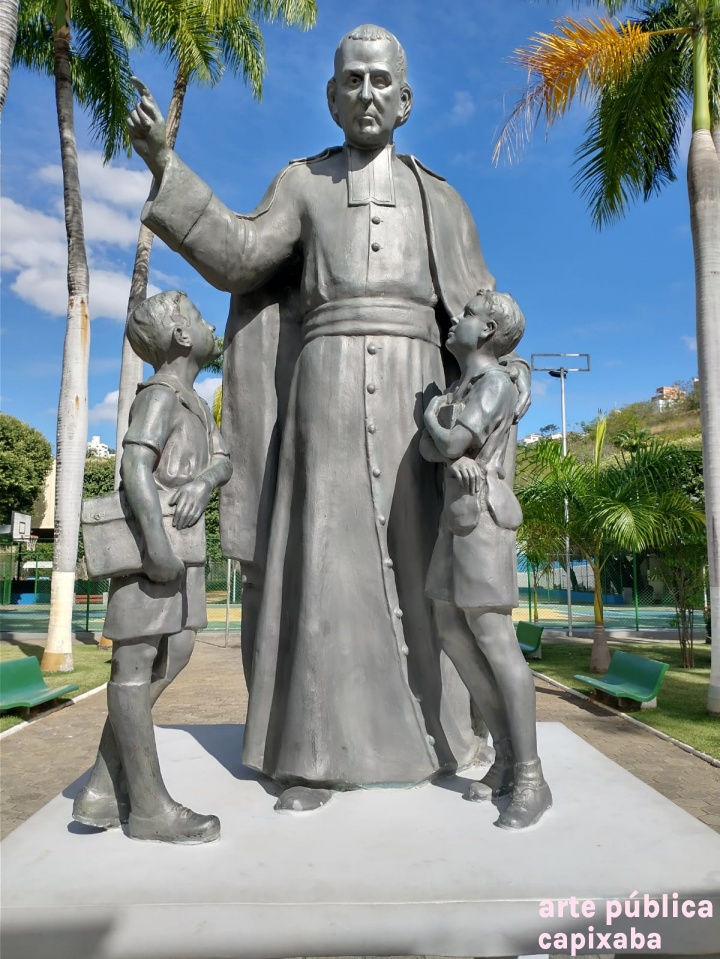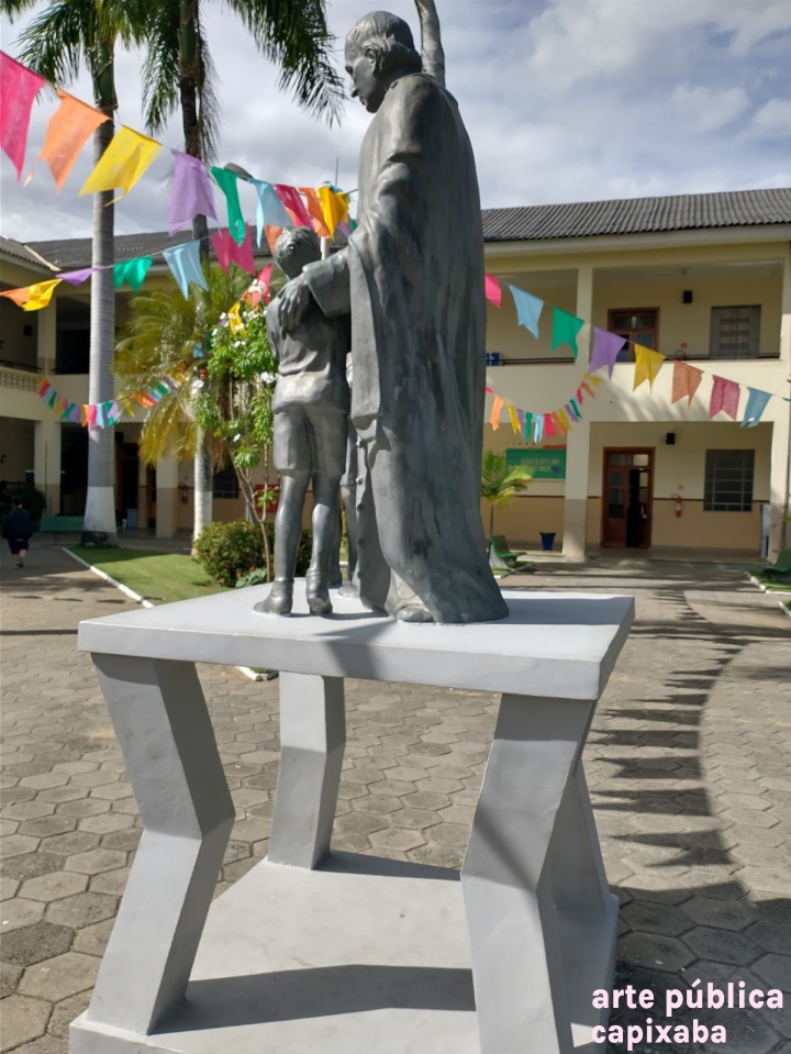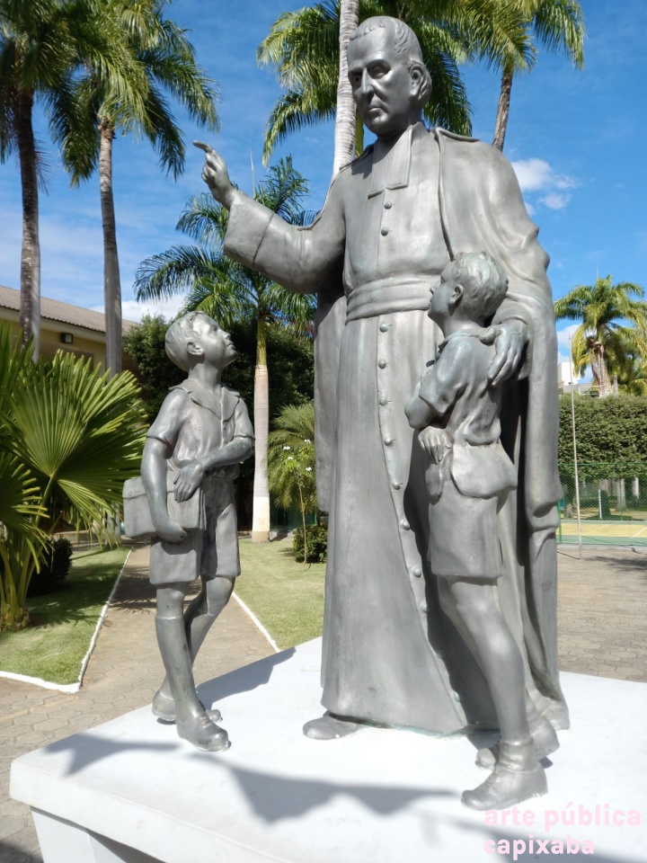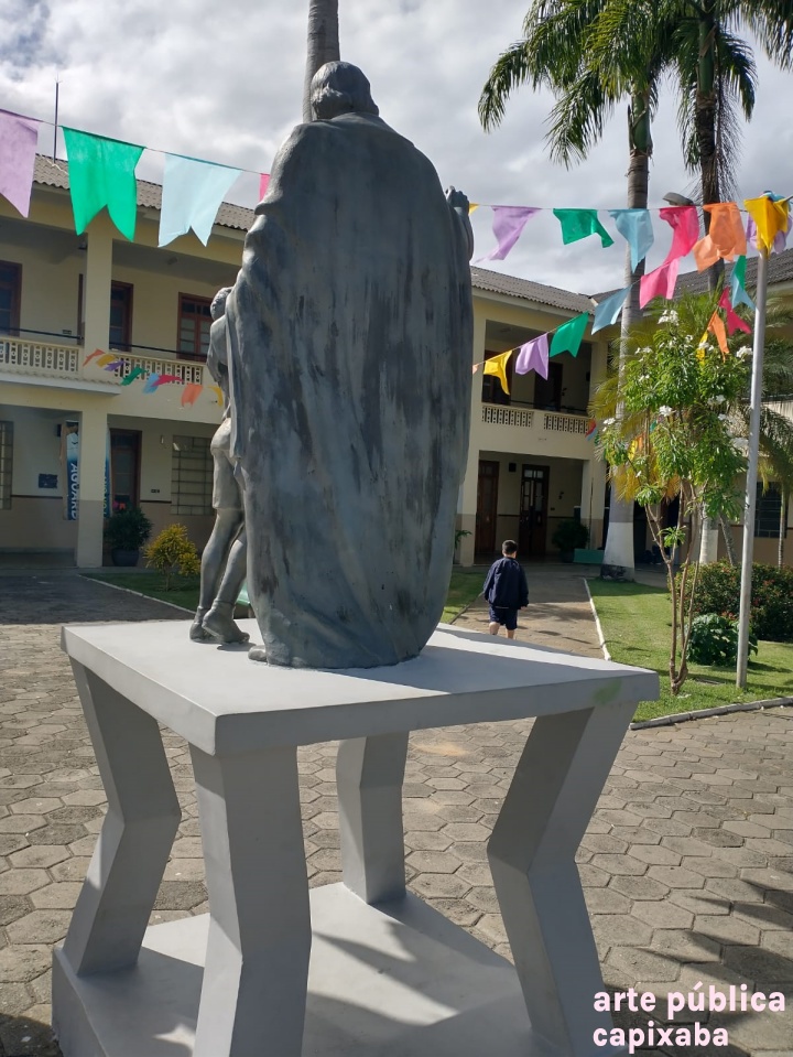 Marcelino Champagnat, foi um padre marista, fundador do Instituto dos Irmãos Maristas. Apaixonado por Deus, se entrega em favor das crianças e jovens, especialmente os mais necessitados. Quando via crianças e jovens sem instrução nem catecismo, exclamava: “Necessitamos irmãos”. Em 2 de janeiro de 1817 inicia com dois jovens o projeto do Instituto dos Irmãozinhos de Maria. Hoje seu projeto tornou-se uma comunidade internacional de irmãos que continua crescendo e mantendo vivo seu sonho. O papa João Paulo II canoniza Marcelino no dia 18 de abril de 1999 na praça São Pedro do Vaticano e o reconhece como santo da Igreja universal, tornando-se São Marcelino Champagnat. O Colégio Marista Colatina surge a partir da chegada dos Irmãos ao estado do Espírito Santo, mais especificamente em Colatina no ano de 1953, data de sua fundação. Dentre as ações marcantes deste período destacam-se o nome do Colégio, que se chamava Ginásio Nossa Senhora do Brasil e funcionava com o sistema de internato para os alunos que vinham do interior. Só estudavam educandos do sexo masculino e as aulas eram ministradas pelos próprios Irmãos. Na época em que os irmãos chegaram, o colégio localizava-se, onde antes era uma fazenda. Em frente à sede da escola, em 10/11/1956, foi instalado o conjunto escultórico, composto de três figuras: dois educandos do sexo masculino e o Padre São Marcelino Champagnat. Peça inédita, a única localizada no Brasil- Província Centro Norte, com esta composição. As demais possuem um menino e uma menina. Quando construída a Avenida São Marcelino Champagnat, a mesma ficou acima do nível das instalações iniciais do Colégio, inundando a área e afetando o monumento escultórico. Em 06/06/1966, a obra foi removida e instalada no pátio do jardim central do colégio e desde 1966 permanece no mesmo atual. Apesar de 1968, o Colégio ser aberto para matrícula para o sexo feminino, a escultura permaneceu em sua composição original. (1)