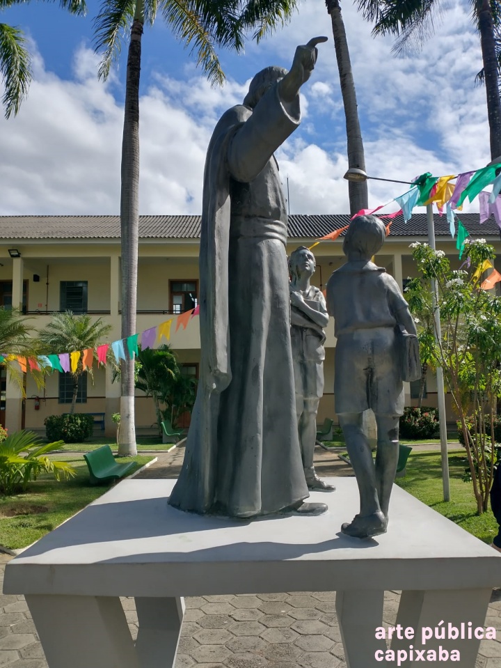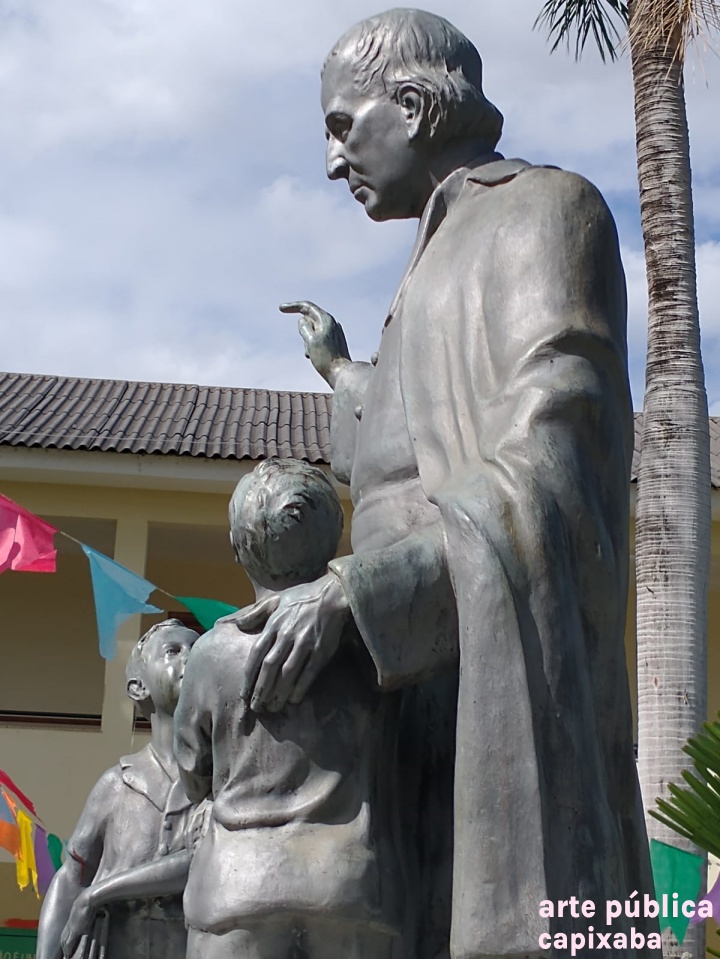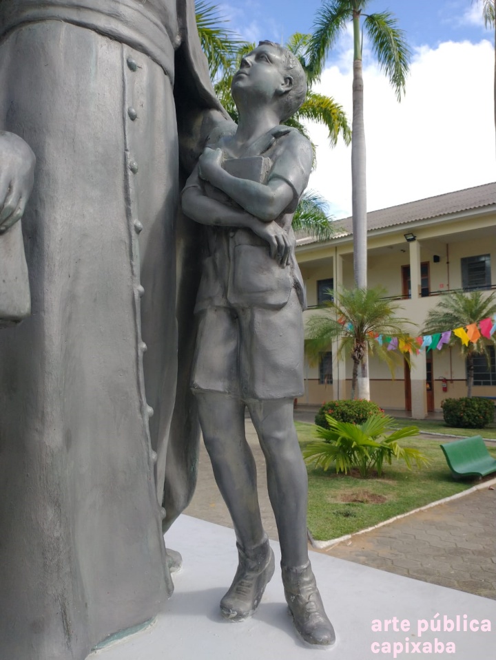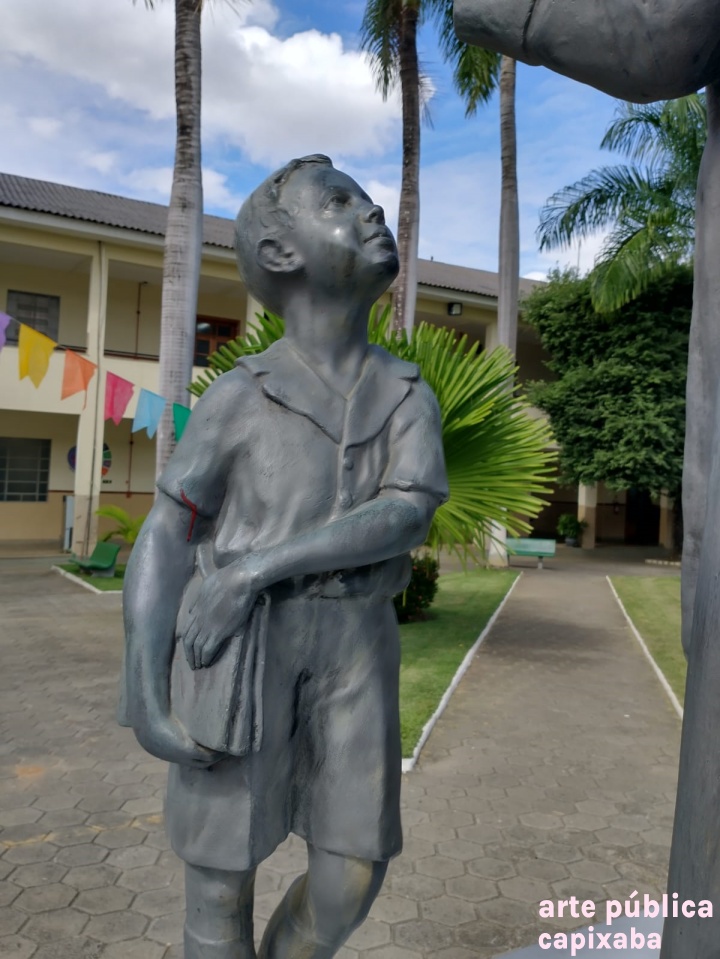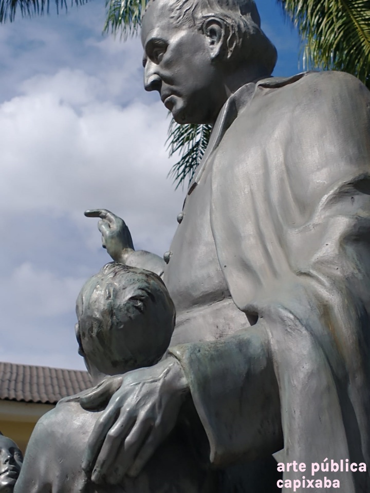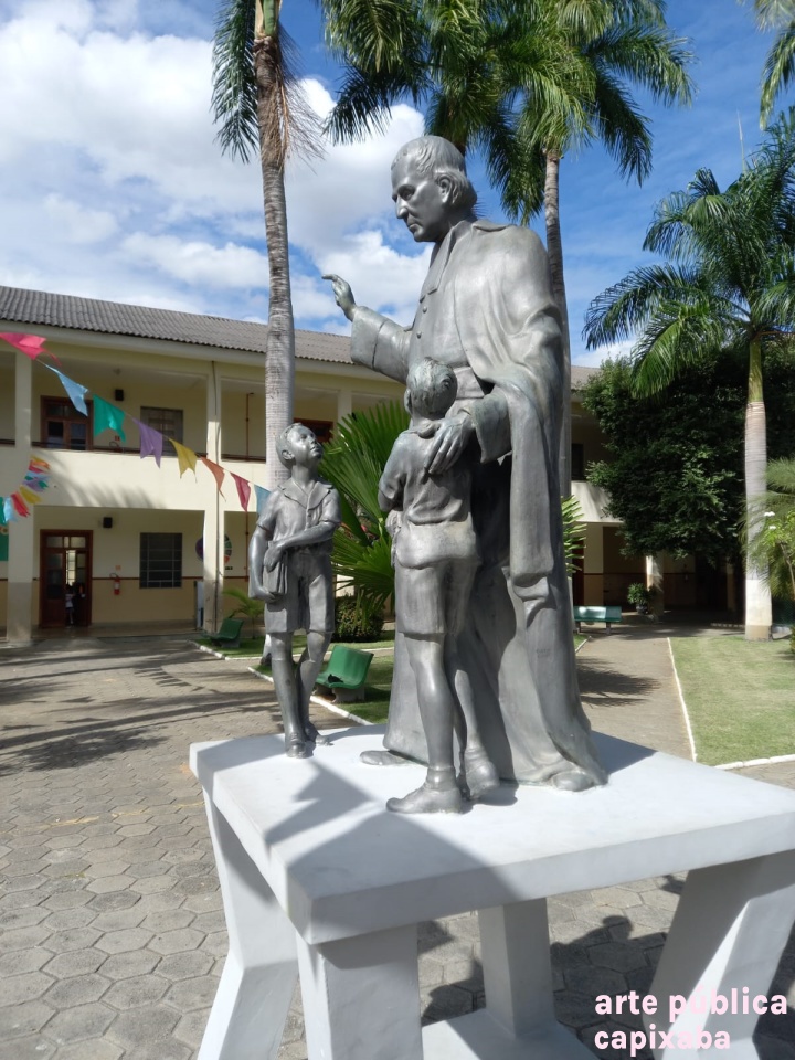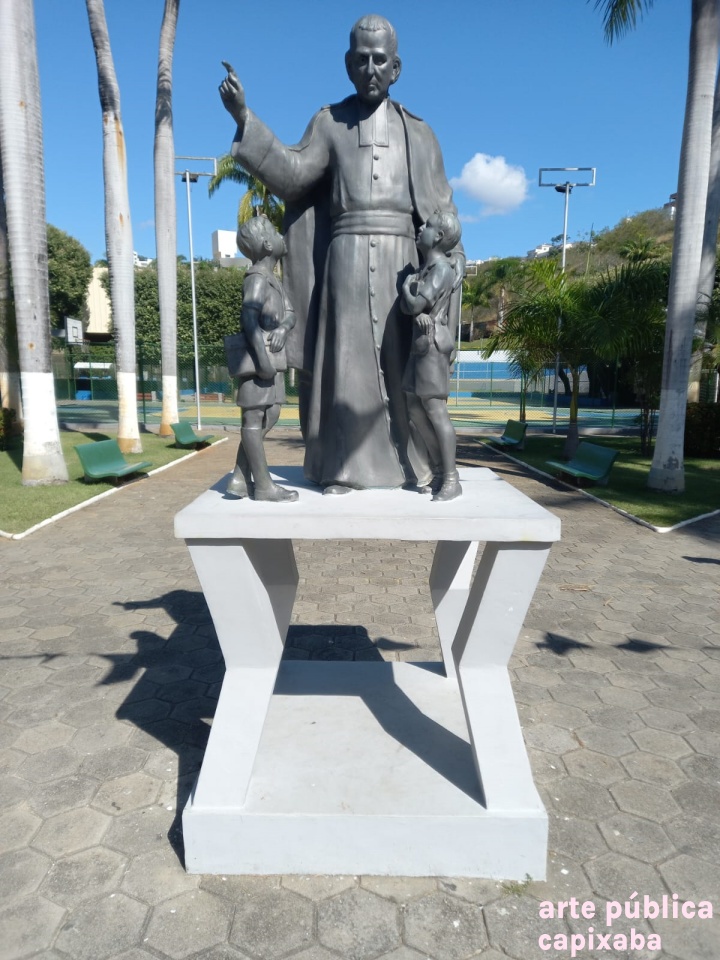Marcelino Champagnat, foi um padre marista, fundador do Instituto dos Irmãos Maristas. Apaixonado por Deus, se entrega em favor das crianças e jovens, especialmente os mais necessitados. Quando via crianças e jovens sem instrução nem catecismo, exclamava: “Necessitamos irmãos”. Em 2 de janeiro de 1817 inicia com dois jovens o projeto do Instituto dos Irmãozinhos de Maria. Hoje seu projeto tornou-se uma comunidade internacional de irmãos que continua crescendo e mantendo vivo seu sonho. O papa João Paulo II canoniza Marcelino no dia 18 de abril de 1999 na praça São Pedro do Vaticano e o reconhece como santo da Igreja universal, tornando-se São Marcelino Champagnat. O Colégio Marista Colatina surge a partir da chegada dos Irmãos ao estado do Espírito Santo, mais especificamente em Colatina no ano de 1953, data de sua fundação. Dentre as ações marcantes deste período destacam-se o nome do Colégio, que se chamava Ginásio Nossa Senhora do Brasil e funcionava com o sistema de internato para os alunos que vinham do interior. Só estudavam educandos do sexo masculino e as aulas eram ministradas pelos próprios Irmãos. Na época em que os irmãos chegaram, o colégio localizava-se, onde antes era uma fazenda. Em frente à sede da escola, em 10/11/1956, foi instalado o conjunto escultórico, composto de três figuras: dois educandos do sexo masculino e o Padre São Marcelino Champagnat. Peça inédita, a única localizada no Brasil- Província Centro Norte, com esta composição. As demais possuem um menino e uma menina. Quando construída a Avenida São Marcelino Champagnat, a mesma ficou acima do nível das instalações iniciais do Colégio, inundando a área e afetando o monumento escultórico. Em 06/06/1966, a obra foi removida e instalada no pátio do jardim central do colégio e desde 1966 permanece no mesmo atual. Apesar de 1968, o Colégio ser aberto para matrícula para o sexo feminino, a escultura permaneceu em sua composição original. (1)