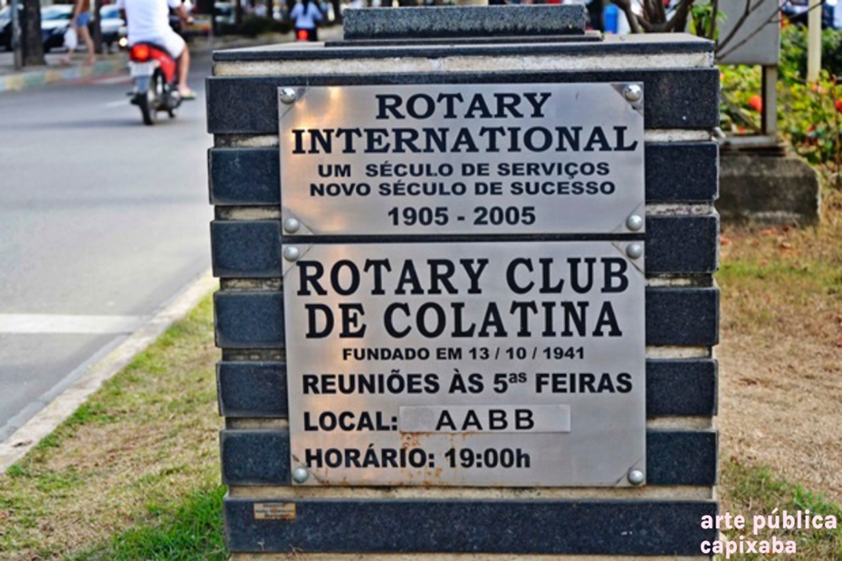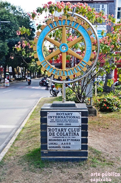 O Rotary é uma organização internacional de mais de 1,2 milhão de pessoas. Os rotarianos prestam serviços humanitários e ajudam a promover a boa vontade. A ideia de Imagem Pública do Rotary vem sendo elevada com mais intensidade por iniciativa de alguns clubes, que criam um espaço público para expor seu totem/ monumento rotário na entrada. O projeto normalmente é feito em parceria com a prefeitura da cidade que possibilita maior acesso à população sobre o que é Rotary e como ele está inserido na comunidade. Divulgar o próprio Rotary (Imagem Pública) e também algumas ações é fundamental para estreitar laços entre os clubes a comunidade assistida por eles e até mesmo aqueles que queiram colaborar com estas causas, conhecendo melhor a instituição e os rotarianos. O emblema oficial de Rotary é o Distintivo Rotário. Ela representa uma história de orgulho e tradição que teve seu começo em 1905 e se formalizou em 1926. O desenho básico do emblema, uma roda, data de 1905, ano em que foi organizado o primeiro Rotary Club na cidade de Chicago, EUA. A Roda Rotária simboliza a universalidade do ROTARY, circunda o planeta terra que aparece no seu âmago, numa demonstração internacionalidade e alcance mundial. Representam as 24 horas diárias, que cada Rotário/a tem para desfrutar, viver e compartilhar com amizade e companheirismo o Ideal de Servir. O Rotary Club de Colatina iniciou suas atividades em 22/11/1941, continuando ativo. O Rotary International é uma associação de clubes de serviços cujo objetivo declarado é unir voluntários a fim de prestar serviços humanitários e promover valores éticos e a paz a nível internacional. Existem mais de 34 mil clubes Rotary no mundo, com cerca de 1,3 milhões de membros, chamados rotarianos. O primeiro Rotary Club foi fundado na cidade de Chicago, Estados Unidos, em 1905 pelo advogado Paul Harris e mais três homens de negócios, Gustav Loehr — engenheiro de minas, Hiran Shorey — alfaiate, Silvester Schiele - comerciante de carvão. A Associação Nacional de Rotary Clubs (National Association of Rotary Clubs) foi fundada em 1910 e em 1912 seu nome mudou para Rotary International em função da admissão do primeiro Rotary Club fora dos Estados Unidos, em Winnipeg, Canadá. O Rotary Club de Colatina iniciou suas atividades em 22/11/1941, continuando ativo. Durante a II Guerra Mundial, muitos clubes foram forçados a se desativar, enquanto outros intensificaram seus esforços humanitários de modo a socorrer as vítimas da guerra. Em 1942, em preparação para o pós-guerra, rotarianos realizaram uma conferência para promover intercâmbios internacionais de âmbito educacional e cultural. Até hoje os intercâmbios culturais e educacionais acontecem entre os jovens rotarianos que são acolhidos por familiares rotarianos no mundo todo. (1)