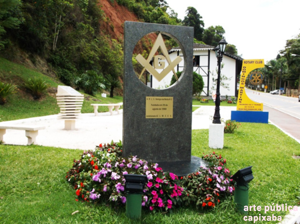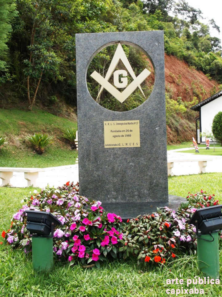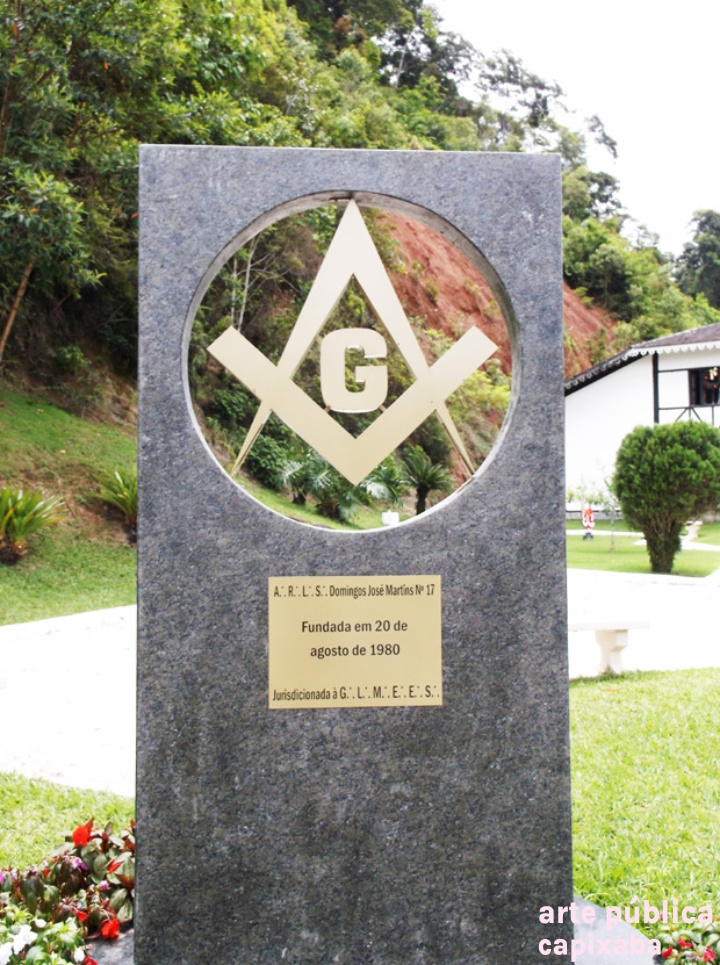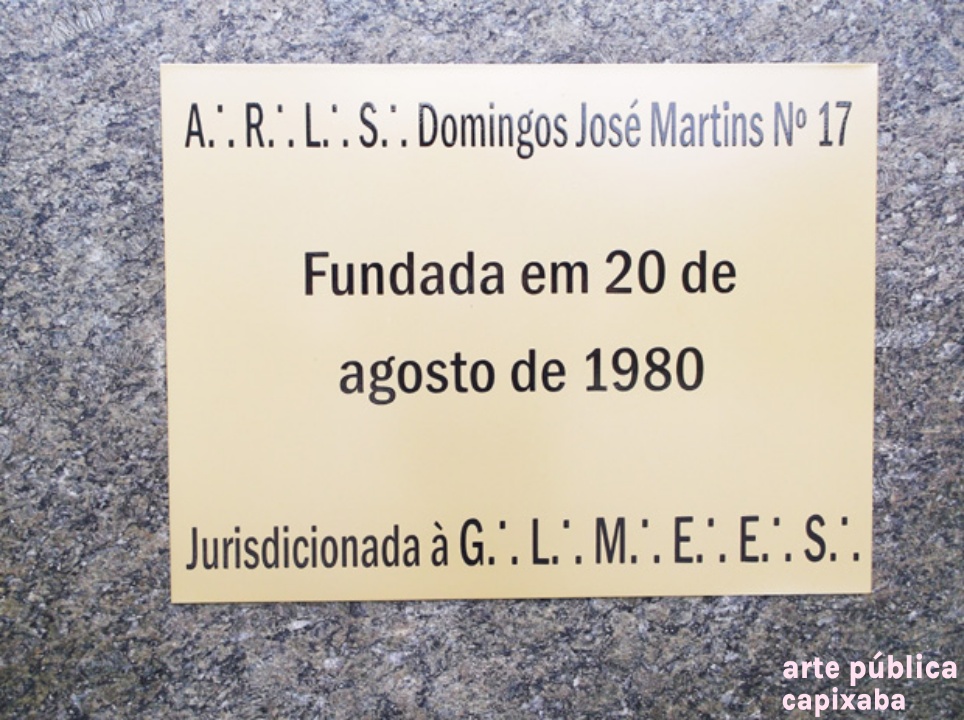 Lê-se: "A..R..L..S..Domingos José Martins N° 17 Fundada em 20 de agosto de 1980 Jurisdicionada à G.. L.. M.. E..E..S."