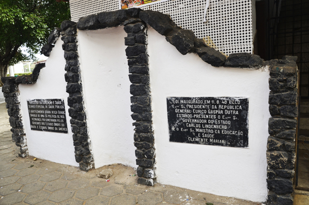 Lê-se na Placa 1: “Foi inaugurado em 11.8.48 pelo Ex.Mo Sr. Presidente da república General Eurico Gaspar Dutra estando presentes o Ex.Mo Sr. Governador do estado Carlos Lindemberg, o Ex.Mo Sr. Ministro da educação e saúde Clemente Mariani” Lê-se na Placa 2: “ Ministério da educação e saúde especial de saúde pública O abastecimento D’Água desta cidade, símbolo de uma sã política de boa vizinhança, foi construído pelos governos dos estados unidos do Brasil e Estados Unidos da América.”