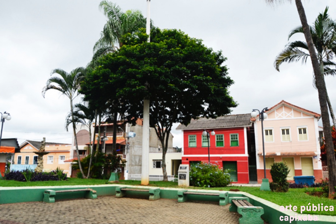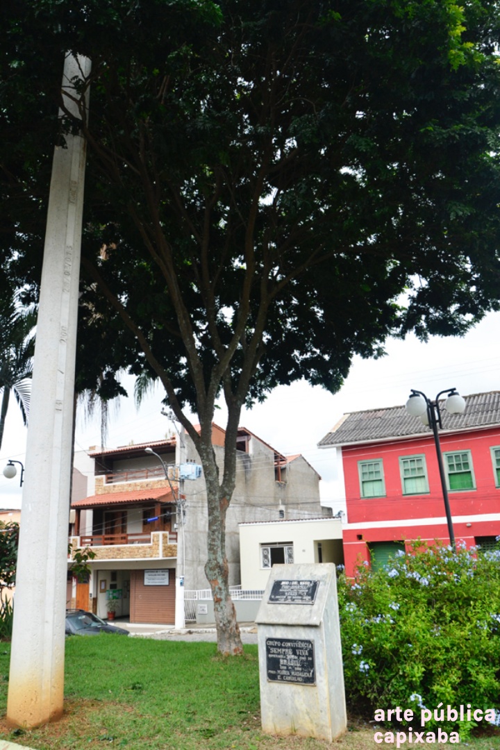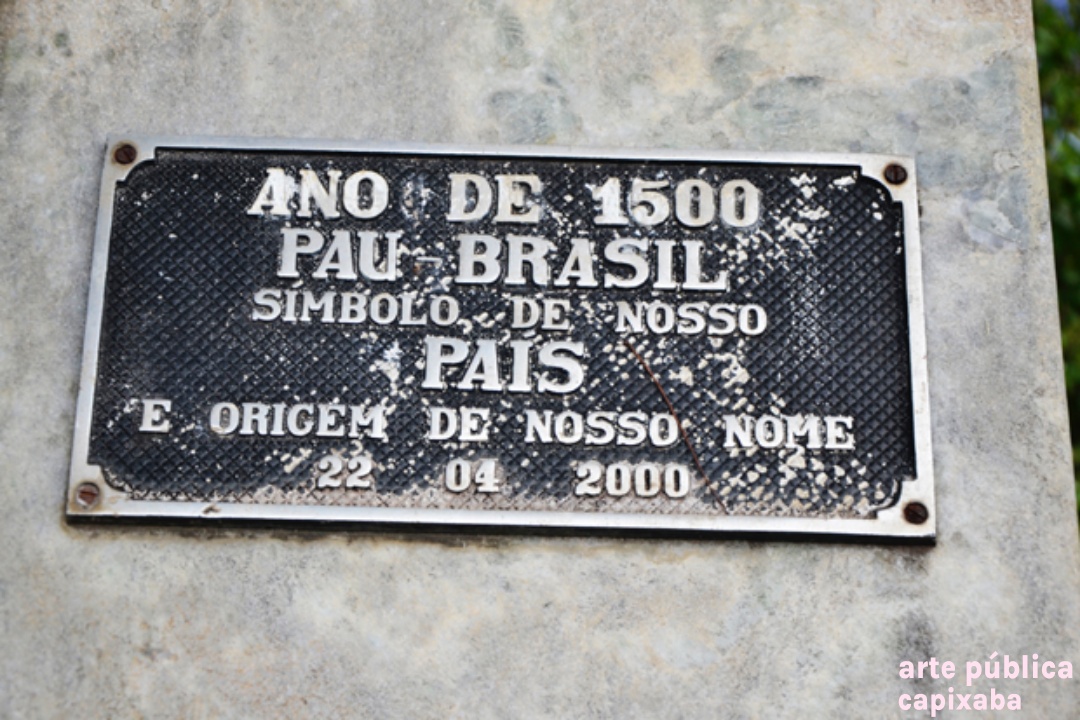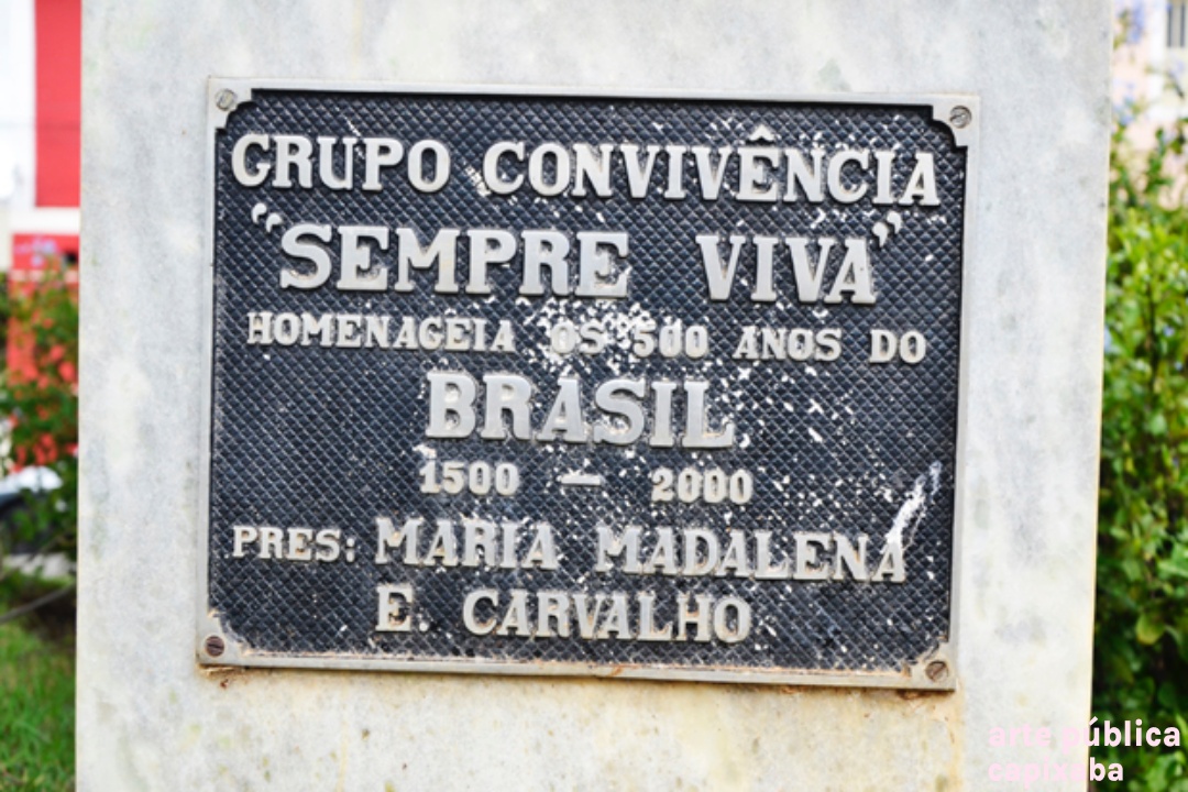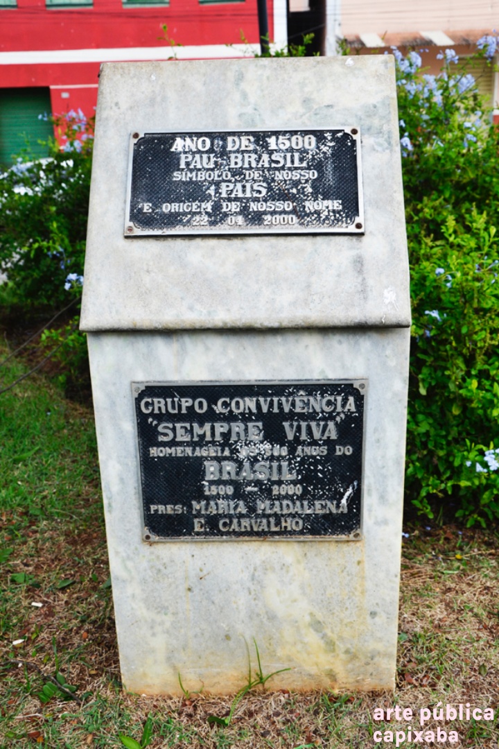 Lê-se: Placa 1: "Grupo convivência "Sempre Viva" homenageia os 500 anos do Brasil 1500 - 2000 Pres. Maria Madalena E. Carvalho." Placa 2: "Ano de 1500 Pau-Brasil Símbolo de nosso país e origem do nosso nome 22 - 04 - 2000"