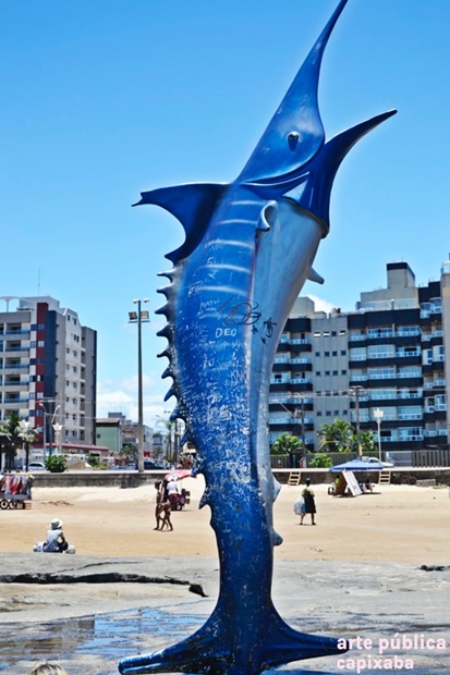 A escultura do Marlim Azul retrata um dos símbolos marinhos mais importantes da região. O monumento foi criado para homenagear e ser tornar um marco da pesca do maior Marlin Azul do mundo, pescado pelo empresário Paulo Amorim, que trouxe visibilidade internacional à cidade quando o retirou das águas do município, um Marlin de 636 quilos, um recorde internacional. A escultura foi realizada pelo artista plástico Giuliano Filippi está localizada na paria do morro em Guarapari, possui 8 metros e foi realizada em fibra de vidro nas cores cinza e azul. (1)