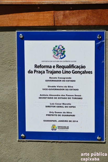 GOVERNO DO ESTADO DO ESPÍRITO SANTO REFORMA E REQUALIFICAÇÃO DA PRAÇA TRAJANO LINO GONÇALVES RENATO CASAGRANDE GOVERNO DO ESTADO GIVALDO VIEIRA DA SILVA VICE-GOVERNADOR DO ESTADO ANTÔNIO ALEXANDRE DOS PASSOS SOUZA SECRETÁRIO DE ESTADO DO TURISMO LUIZ CESAR MARETTO DIRETOR GERAL DO TURISMO LUIZ CESAR MARETTO DIRETOR GERAL DO IOPES ORLY GOMES DA SILVA PREFEITO DE GUARAPARI GUARAPARI, JANEIRO DE 2014