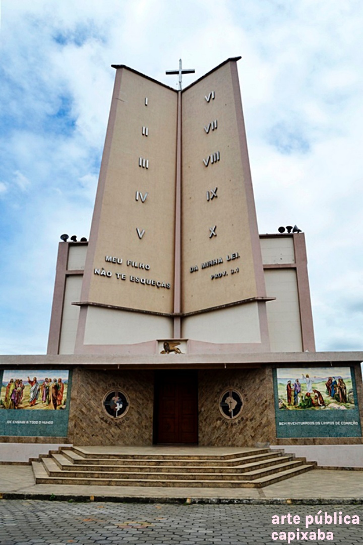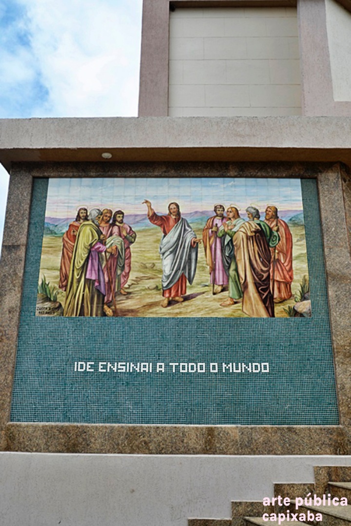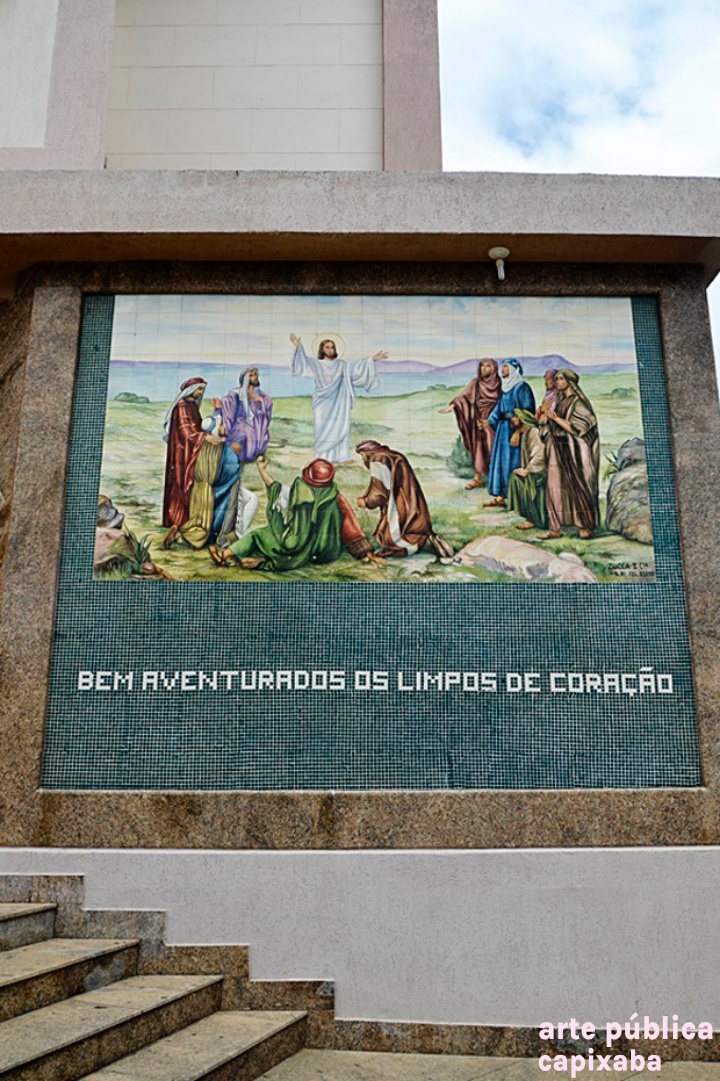 Lê-se: Painel 1: "Ide ensinai a todo o mundo" Painel 2: "Bem aventurados os limpos de coração"