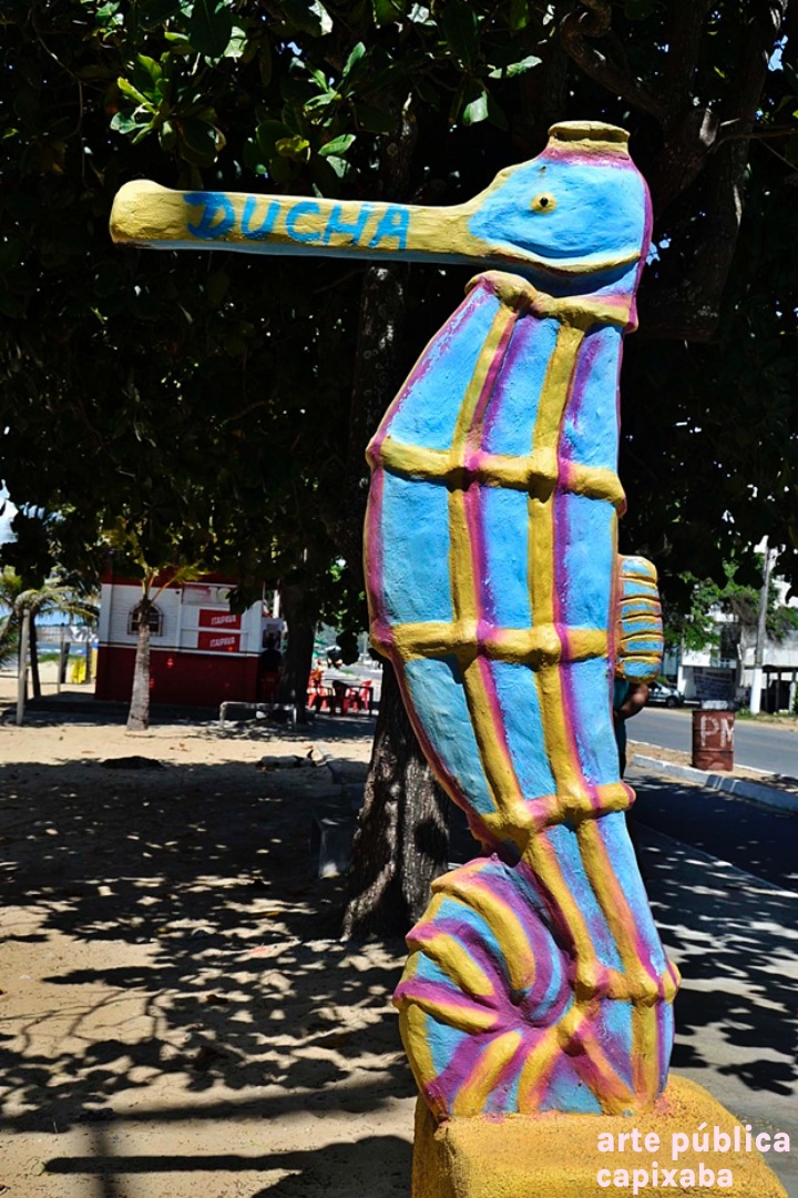 O Hipocampo (grego: hippos = cavalo, kampi = monstro), é uma criatura mitológica partilhada pela mitologia Fenícia e Grega. É descrito como cavalo na parte anterior do seu corpo como peixe na parte posterior como cuda de um peixe escamoso, como um cavalo-marinho, outros dizem ter a forma de cavalo na metade anterior e de peixe, dragão ou serpente na posterior. Sua cor varia entre verde e azul. Na mitologia grega, o hipocampo servia de companhia e montaria às nereidas (filha do deus Nereu, e compartilhavam com ele o mar Egeu) e de animal de tração ao carro de Poseidon (deus dos mares). Seres com características semelhantes aparecem na arte de outras culturas, inclusive a Mesopotâmia e a Índia. Também foi representado em bronzes, prataria e pinturas da Antiguidade romana ao período barroco. Na heráldica europeia, o hipocampo é representado com cabeça e torso de cavalo, mas com uma barbatana de peixe no lugar da crina, pés com membranas no lugar de cascos, cauda de peixe e, às vezes, asas de peixe-voador. Criados por Poseidon a partir da espuma do mar, são animais com caudas de peixes brilhantes, semelhantes ao arco-íris, e a parte frontal de seus corpos são de cordel branco. Os hipocampos são as montarias do exército de Poseidon. Homero associa Poseidon, que era o deus dos cavalos, tremores na terra e no mar, causados pelos cascos de bronze dos cavalos sobre a superfície do mar, e Apolónio de Rodes, sendo conscientemente arcaico em Argonautica, descreve o cavalo de Poseidon que emerge do mar e galopeando para longe do outro lado das areias líbias. Em imagens helenísticas e romanas, no entanto, Poseidon (ou Netuno) muitas vezes leva uma carruagem marítima puxada por hipocampos. Assim, hipocampos são associados com esse deus em ambas as representações antigas e as mais modernas, como nas águas do século 18 na Fonte de Trevi em Roma. Em podem viver em água doce e salgada e pode até mesmo respirar o ar, mas precisa ser perto da água para não ressecado. Eles são herbívoros e se alimentam de algas e vegetação macia. São muito dóceis mesmo quando atacados. Fonte: Cedoc/Leena/UFES