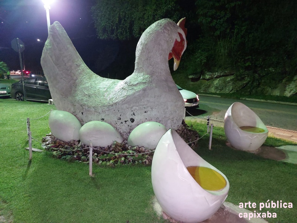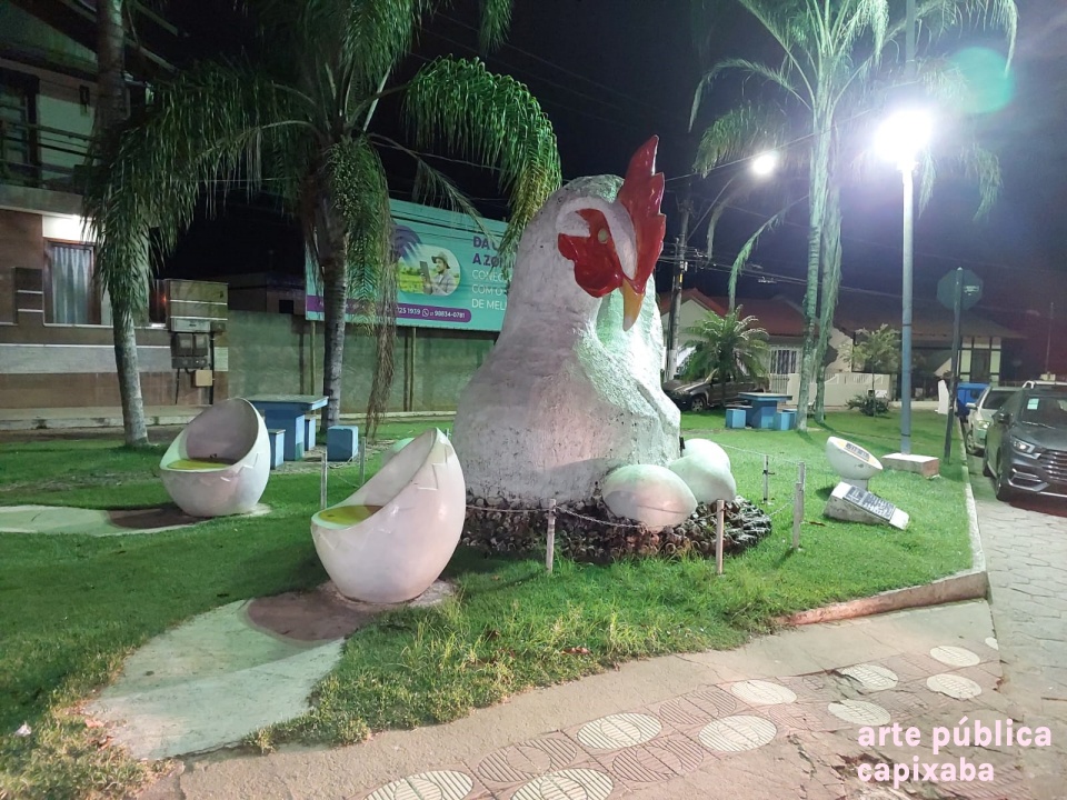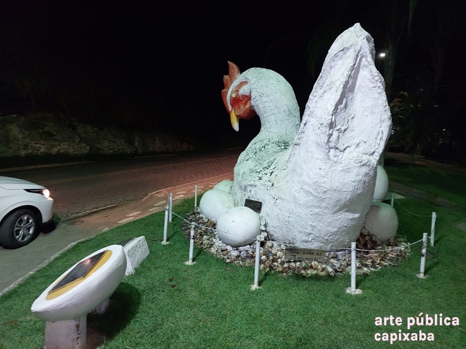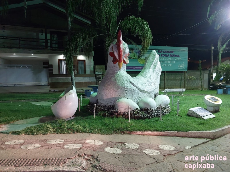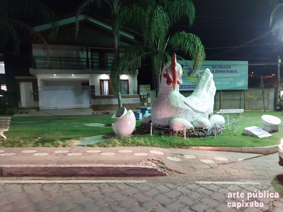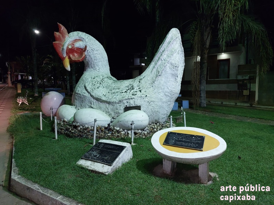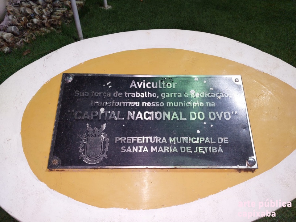 Lê-se: "Avicultor Sua força de trabalho, garra e dedicação transformou nosso município na "CAPITAL NACIONAL DO OVO" Prefeitura Municipal de Santa Maria de Jetiba."