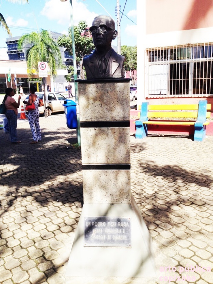 Sobre o homenageado: O antigo Bairro das Flores se transformou em Feu Rosa em uma homenagem ao médico Dr. Pedro Feu Rosa, que abraçou a profissão atendendo a todos que o procurassem, podendo pagar ou não. Ainda criança, já afirmava, com convicção, que queria ser médico “para socorrer gente pobre”. E assim o fez por cerca de 50 anos. Por isto mesmo, “saiu da profissão mais pobre do que quando entrou”, dizem pessoas que conviveram com ele. Pedro nasceu na Serra no dia 12 de junho de 1900 e morreu em Vitória no dia 23 de maio de 1977. Filho do comerciante João Pedro Feu Rosa e de Victória Feu Rosa, Dr. Pedro iniciou o Curso Primário na Escola Pública da Serra e concluiu na Escola Paroquial de Vitória. Casou-se com Leonor Miguel Feu Rosa em 27 de junho de 1931 e tiveram seis filhos, alguns deles, que assim como o pai, marcariam para sempre a história da Serra: Maria Tereza Feu Rosa Pazolini, Antônio José Miguel Feu Rosa, José Maria Feu Rosa (ex-prefeito da Serra e advogado, profissão exercida também pelos outros dois irmãos citados); Ana Maria (Lia) Feu Rosa Vecci (bacharel em Filosofia), Pedro Feu Rosa Filho (médico) e João Miguel Feu Rosa (engenheiro e ex-deputado Federal). (1)