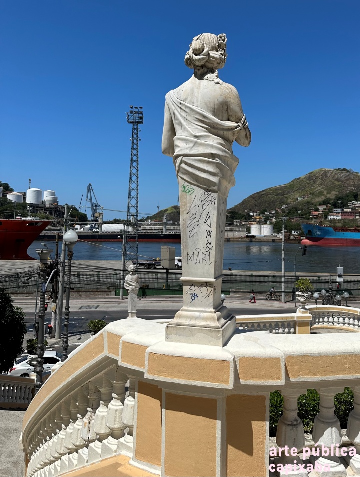 As alegorias integram o conjunto da escadaria Bárbara Monteiro Lindenberg, construída em estilo eclético, inspirado em Luís XVI. Foi projetada pelo engenheiro francês Justin Norbert, conforme contrato firmado em 1912 com o Governo do Estado do Espirito Santo. O objetivo desse contrato era a completa remodelação das fachadas do Palácio do Governo (antigo complexo religioso dos Jesuitas), incluído seu entorno (praça João Climaco e Escadaria). Dentre os conceitos do estilo eclético, havia a instalação de esculturas e fontes/repuxos de água, que serviam para embelezar os espaços públicos. CURIOSIDADES A mitologia grega procura justificar, em suas alegorias, os fenômenos da natureza. Segundo o "Mito das Estações", verão, outono, inverno e primavera foram criadas pela Deusa Deméter (Agricultura) e sua filha Perséfone (Deusa das Flores). (1)