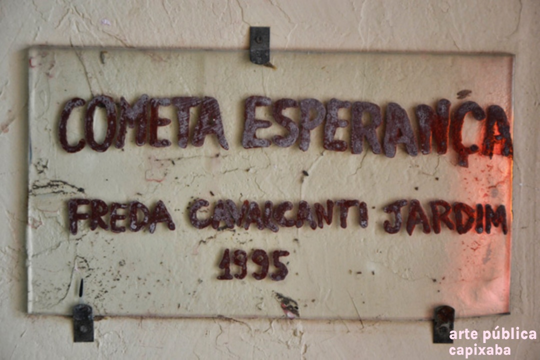 Lê-se: "Cometa Esperança Freda Cavalcanti Jardim 1995"