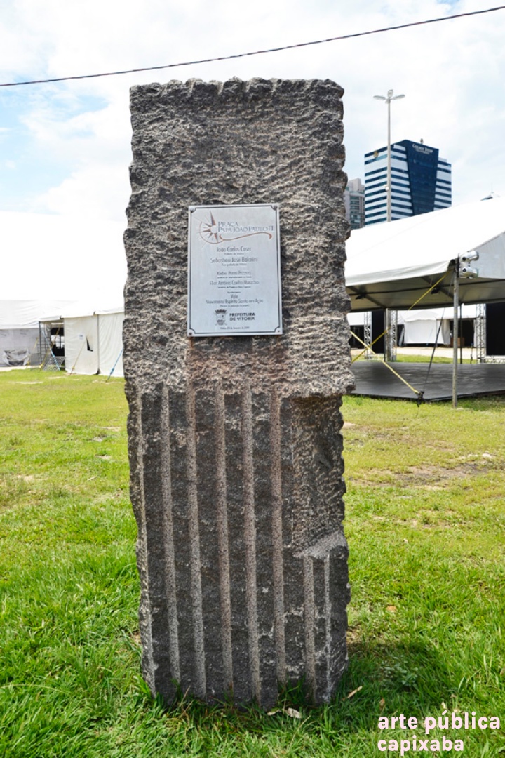 Sobre a Praça do Papa: Inaugurada em 2008, a Praça do Papa possui aproximadamente 67.000 metros quadrados e conta com parque infantil, área de eventos, dois restaurantes - um deles especializado em frutos do mar- e uma lanchonete, além de estacionamento. Uma trilha leva à Reserva Ecológica da Ilha do Papagaio, área adjacente à praça e onde há um mirante. A Praça do Papa, instalada no bairro Enseada do Suá é uma das áreas nobres da capital do Espírito Santo e forma uma espécie de esplanada de onde é possível apreciar uma das belas vistas da cidade: a baía de Vitória, tendo ao fundo o Convento da Penha e a cidade de Vila Velha. No seu entorno podemos conhecer dois projetos de cunho ecológico importantes: o Projeto Tamar (inaugurado em 19/12/2012) e o Projeto Baleia Jubarte, inaugurado em 21/02/2019. No Tamar, o visitante conta com roteiro interpretativo sobre a conservação das tartarugas marinhas no Brasil, biologia das espécies, espaços temáticos sobre a foz do Rio Doce e a Ilha da Trindade, principais locais de desova das tartarugas no estado. Já o. Projeto Baleia Jubarte conta com uma exposição educativa permanente sobre as baleias e golfinhos, um auditório para palestras e cursos e uma área de exposições culturais temporárias, além de escritório que dará apoio às nossas atividades de pesquisa e de apoio ao Turismo de Observação de Baleias na região. A área da praça, originada de um aterro (Aterro da Comdusa), recebeu o nome Praça do Papa em função da missa campal realizada no dia 19 de outubro de 1991 pelo Papa João Paulo II. Nascido Karol Józef Wojtyta e, desde 27 de abril de 2014, São João Paulo II, foi o líder da igreja Católica de 16 de outubro de 1978 até a sua morte, em 8 de abril de 2005. A Igreja Católica celebra o dia de São João Paulo II em 22 de outubro. (1)