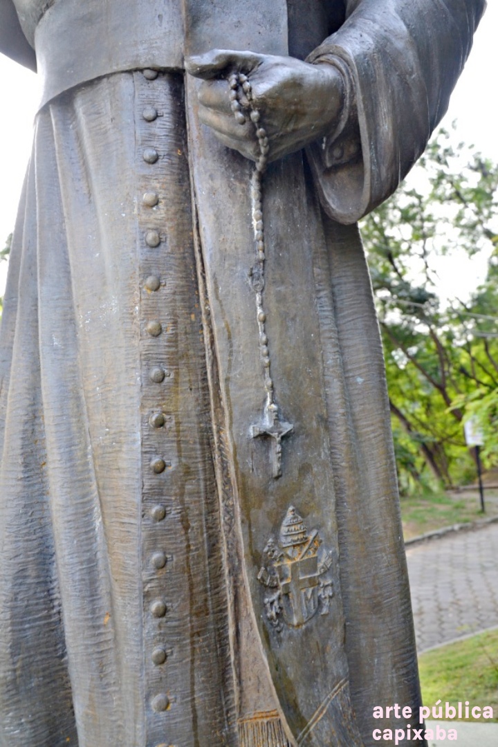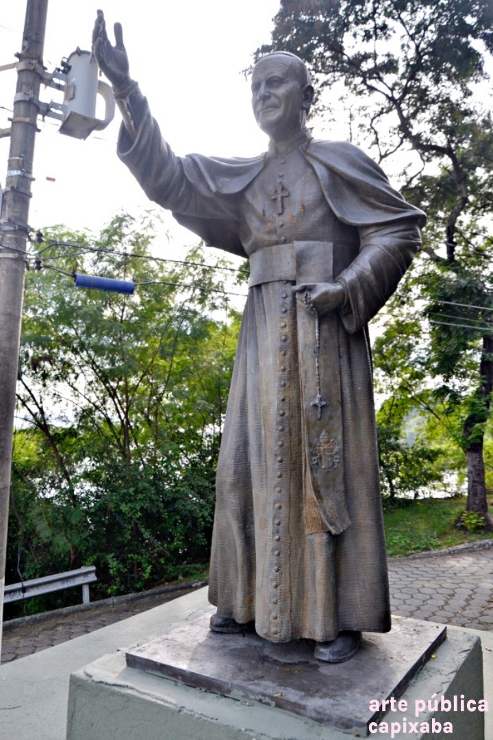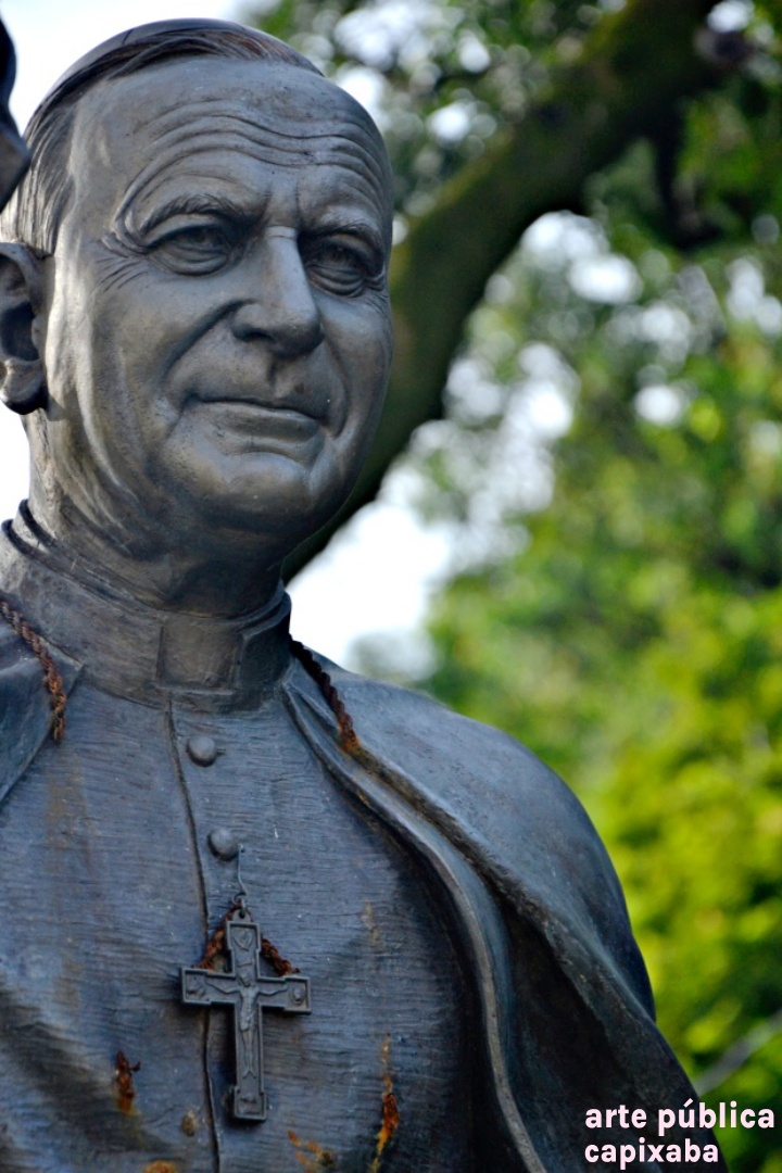 Sobre o Papa João Paulo II: Karol Wojtyła nasceu a 18 de Maio de 1920 em Wadowice, na Polónia meridional, onde viveu até 1938, quando se inscreveu na faculdade de filosofia da Universidade Jagelónica e se transferiu para Cracóvia. No Outono de 1940 trabalhou como operário nas minas de pedra e depois numa fábrica química. Em Outubro de 1942 entrou no seminário clandestino de Cracóvia e a 1 de Novembro de 1946 foi ordenado sacerdote. A 4 de Julho de 1958, Pio XII nomeou-o bispo auxiliar de Cracóvia. Recebeu a ordenação episcopal a 28 de Setembro seguinte. Como lema episcopal escolheu a expressão mariana Totus tuus de são Luís Maria Grignion de Montfort. Primeiro como auxiliar e depois, a partir de 13 de Janeiro de 1964, como arcebispo de Cracóvia, participou em todas as sessões do concílio Vaticano II. A 26 de Junho de 1967 foi criado cardeal por Paulo VI. Em 1978 participou no conclave convocado depois da morte de Montini e no sucessivo após o inesperado falecimento de Luciani. Na tarde de 16 de Outubro, depois de oito escrutínios, foi eleito Papa. Primeiro Pontífice eslavo da história e primeiro não italiano depois de quase meio milénio, desde o tempo de Adriano VI (1522-1523). (1)