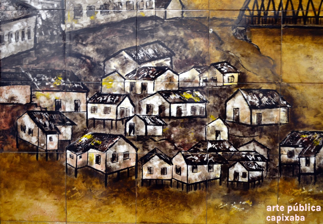 Palafitas da Ilha do Príncipe - Painel de azulejos do antigo Rural Bank